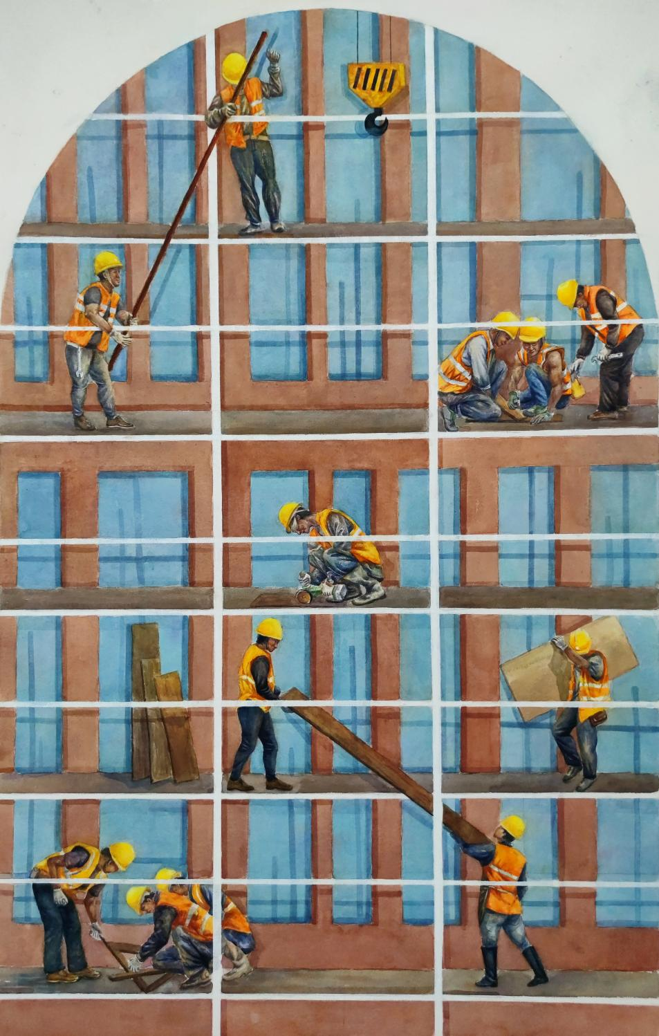 薛琳彦《城市建设者》150cm*100cm 纸本水彩