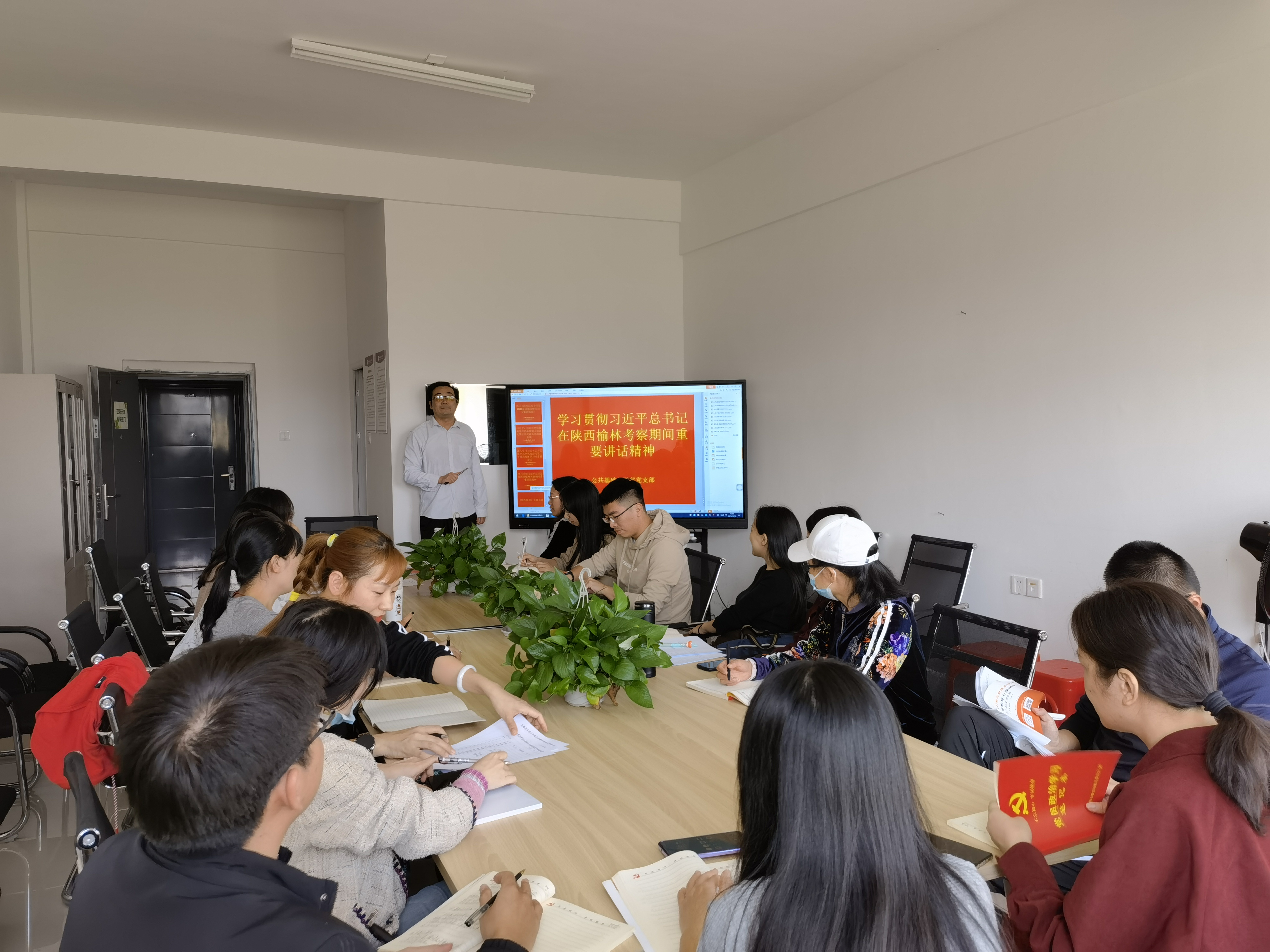 11月 12 日,公共基础教学部党支部组织学习习近平总书记在陕西榆林考察期间的重要讲话精神。