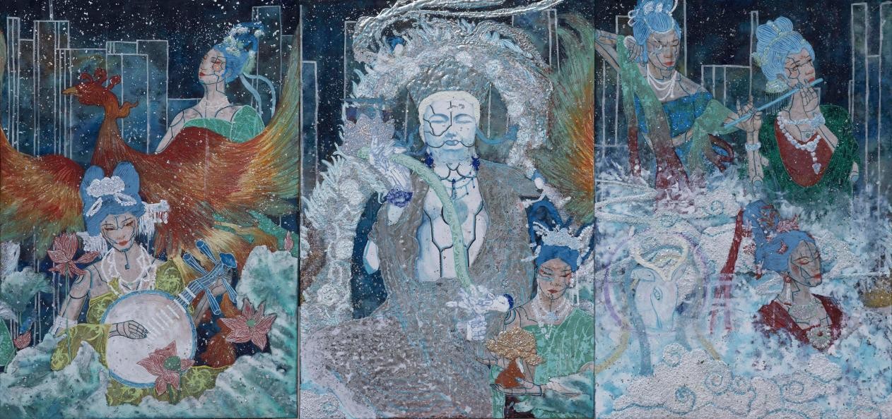 绘画 1901 班 柯钿钿《千禧之缘》100×210cm 纸本岩彩 指导教师:熊晓翠