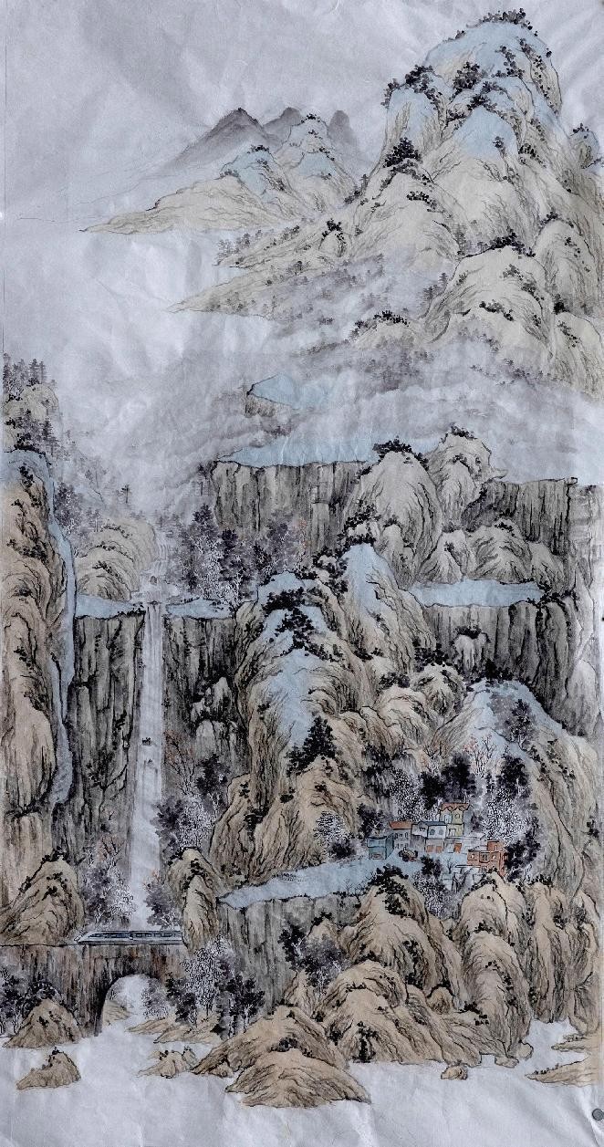 绘画 1902 班 尹东明《水墨·千峰万仞》180×90cm 纸本水墨 指导教师:陈建江
