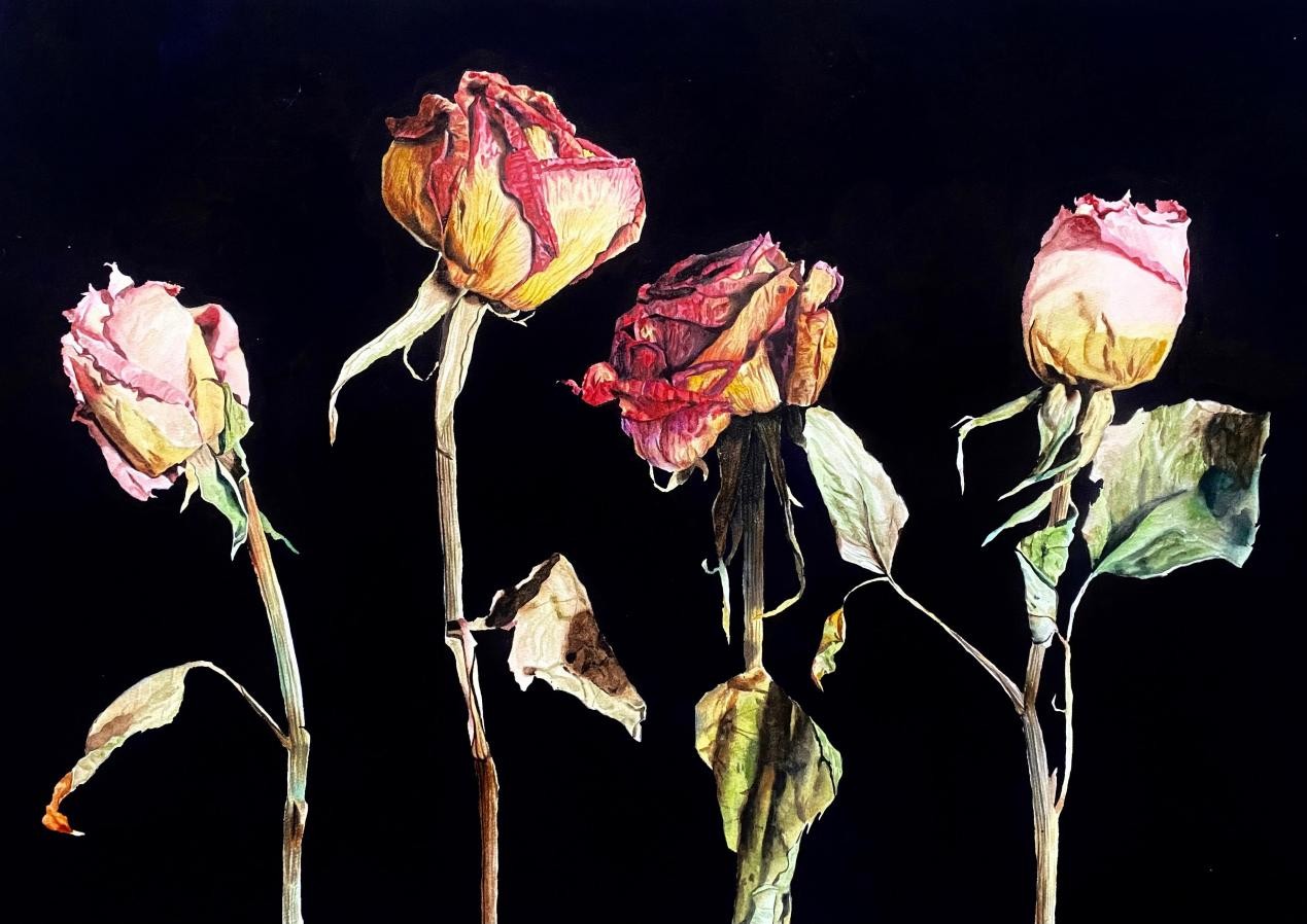 绘画 1906 班 韦琅娜《玫瑰》52×74cm 水彩 指导教师:段凝