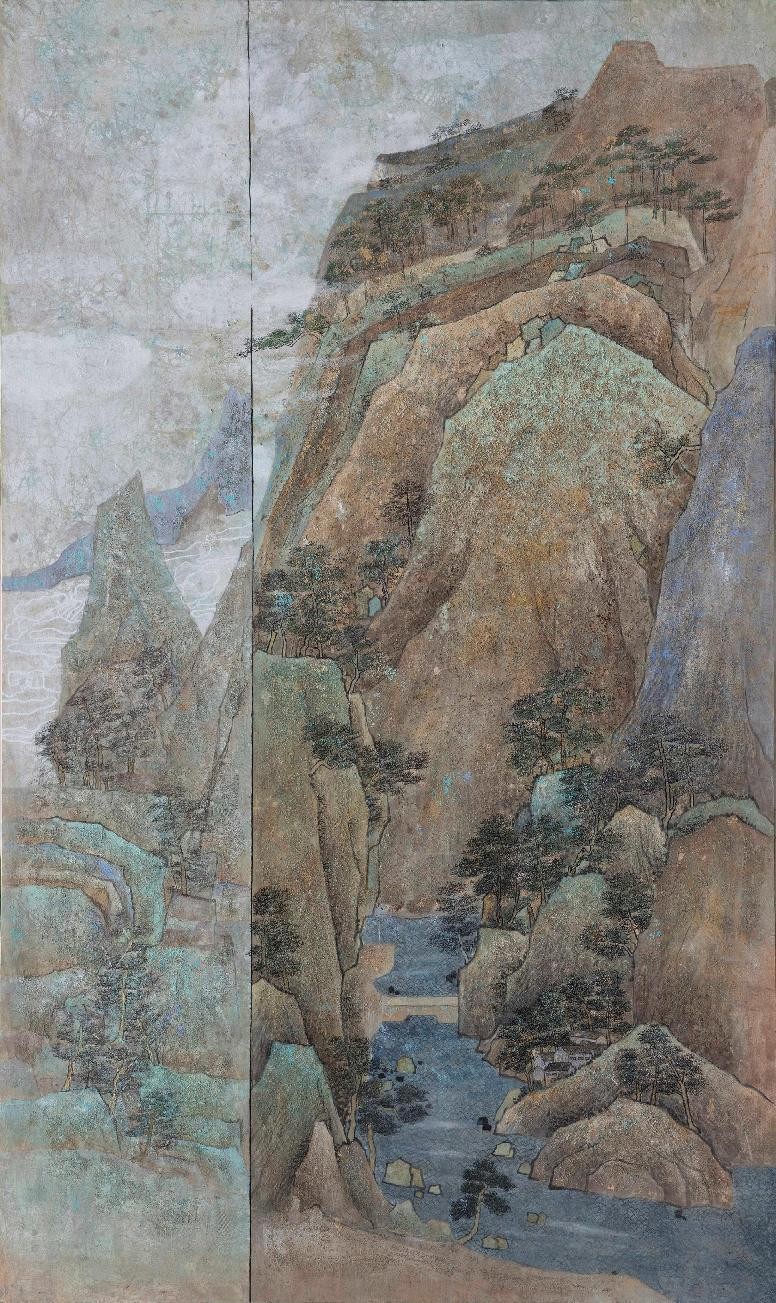 绘画 1901 班 张雪《西山松晴图》200×120cm 纸本岩彩 指导教师:熊晓翠