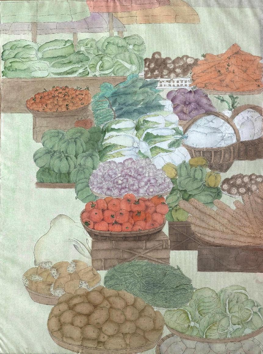 绘画 1902 班 张乔乔《菜场》120×160cm 工笔设色 指导教师:陈建江