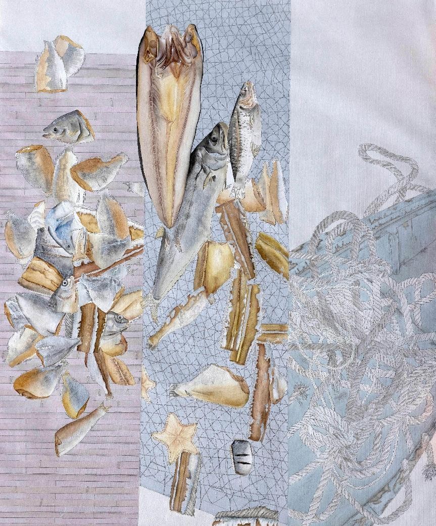 绘画 1902 班 叶欣《渔·鱼》210×140cm 工笔设色 指导教师:陈建江