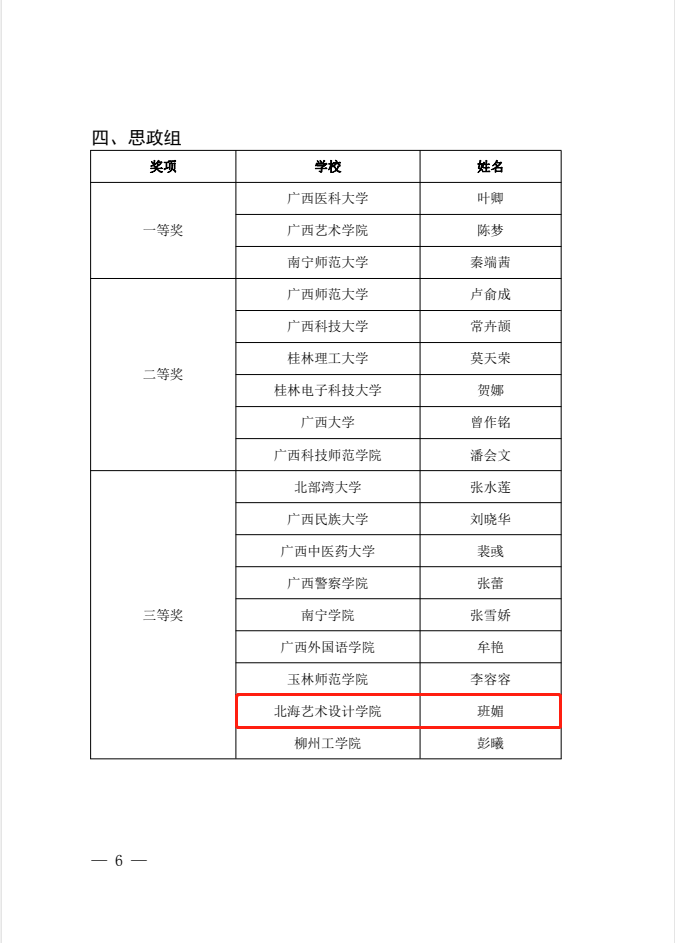 喜报:我院教师班媚荣获第九届全区高校青年教师教学竞赛思政组三等奖