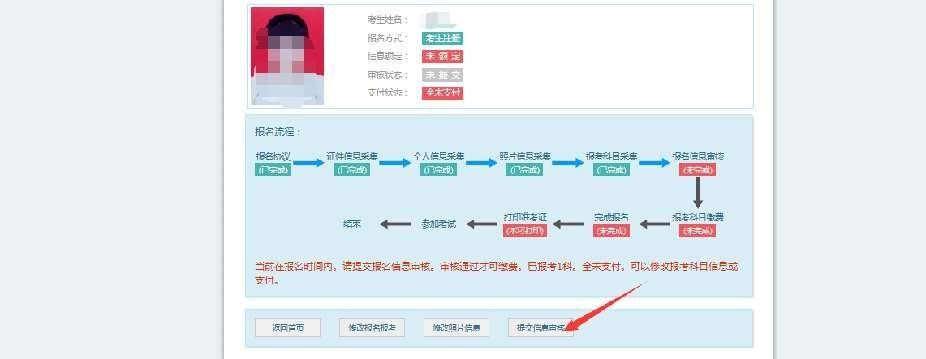 考生信息变为“待审核”状态,此时考生不能修改报名信息。