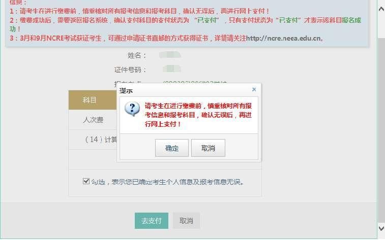 3.支付成功后报名流程完成,考生不能修改个人信息、科目信息或退考退费。