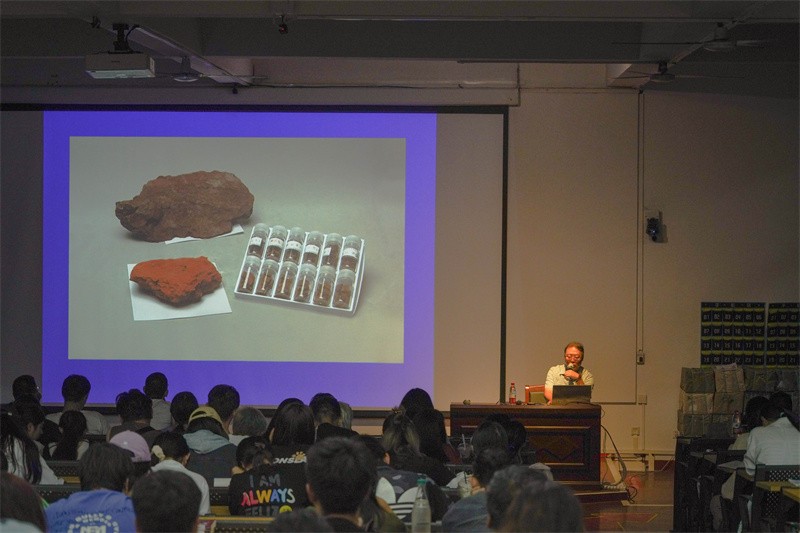 在中国传统颜色的制造以及制造材料方面,王书杰教授通过让现场师生观看用传统绘画技术绘画出的优秀作品的方式,让大家更直观地感受传统绘画的魅力。王书杰教授还着重强调,很多中国传统颜料实为中药材,其中有相当一部分材料中含有一定的毒素,他提醒各位同学们在使用时要注意安全。