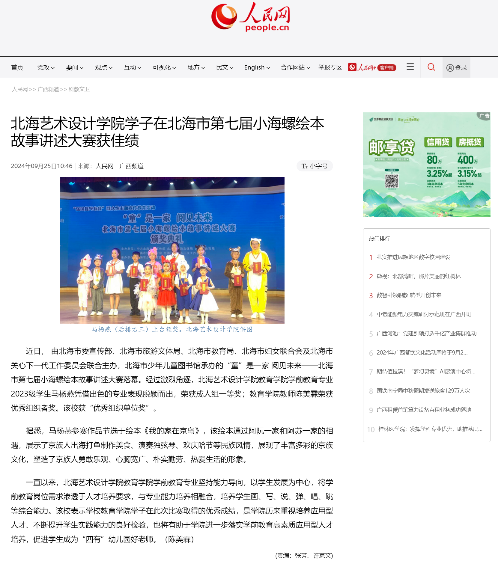 人民网:北海艺术设计学院学子在北海市第七届小海螺绘本故事讲述大赛获佳绩