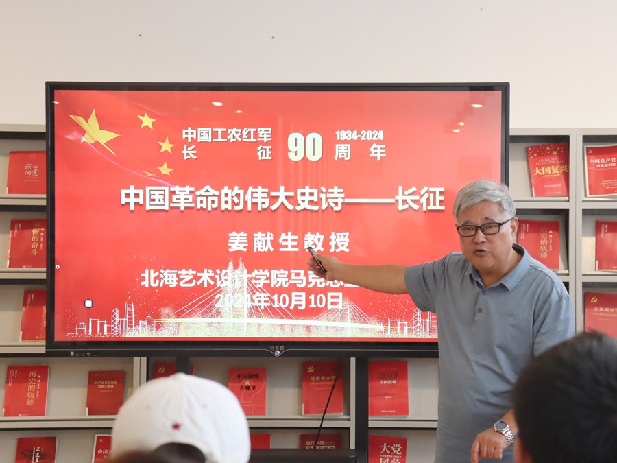 10月10日下午,本学期红色专题知识系列讲座在学校图书馆三楼“红色阅读角”正式拉开序幕,首场讲座由马克思主义学院院长姜献生教授以《中国革命的伟大史诗——长征》为题精彩开讲。