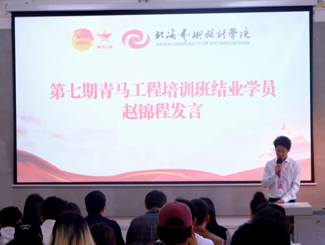 第七期青马工程结业学员赵锦程在发言中,他提到,我们作为新时代的青年马克思主义者,肩负着民族复兴大任,必须踔厉奋发、挺膺担当,引领正确思潮,用实际行动践行“请党放心,强国有我”的铮铮誓言,投身到新时代的伟大事业中去,为实现新时代伟大复兴的中国梦贡献青春力量!