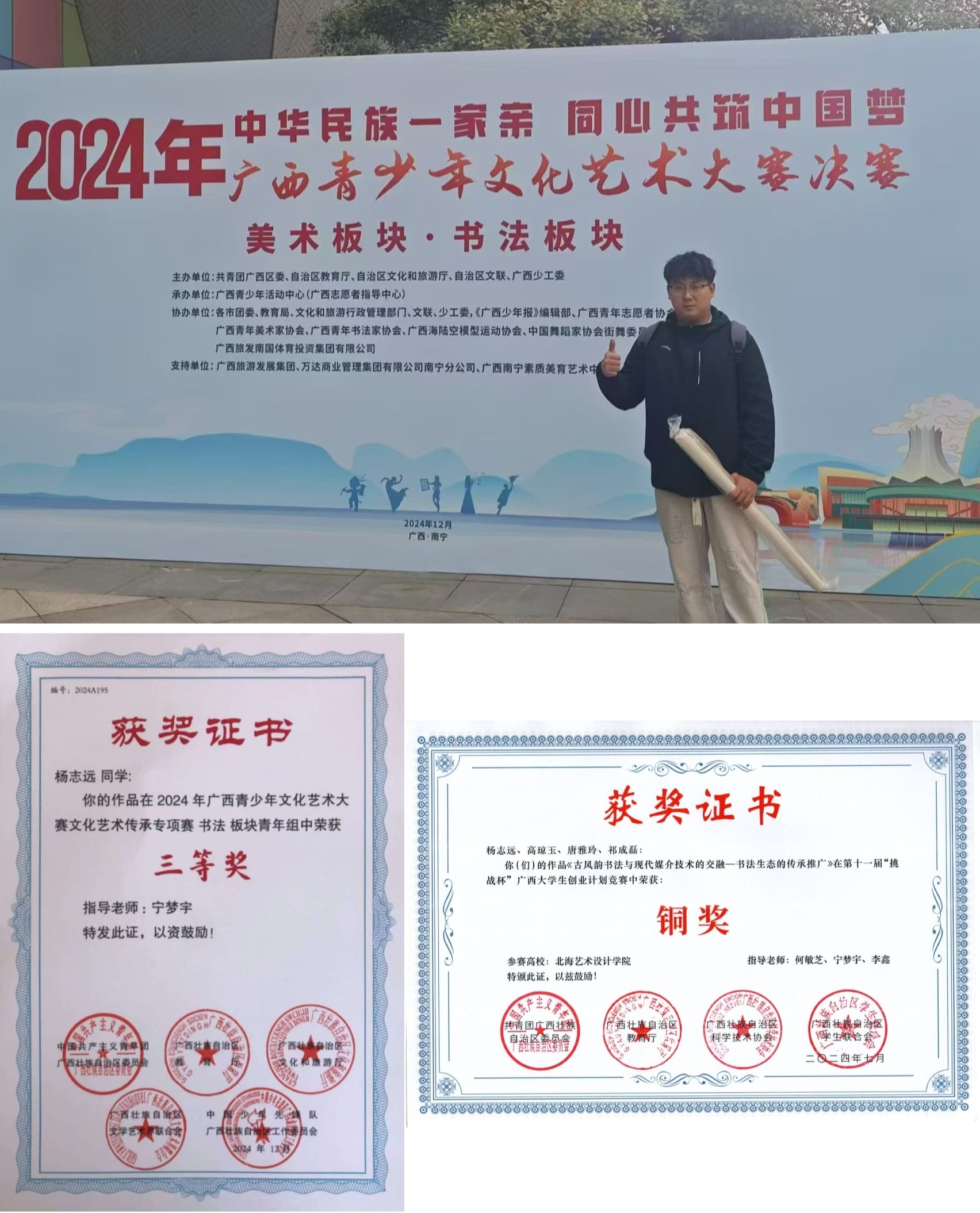 2024 年 12 月,作品获广西青少年文化艺术大赛文化艺术传承专项赛书法板块青年组三等奖。