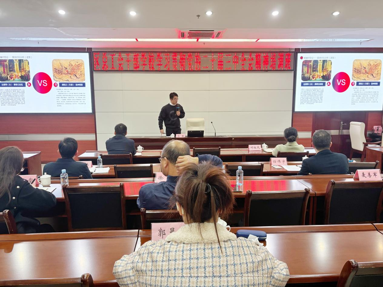 郭巍老师立足艺术领域的专业优势,以 “劳模精神、劳动精神、工匠精神” 为核心,结合党的二十届三中全会精神内涵,通过案例解析与理论阐释,分析在艺术作品中如何深化对 “三个精神” 的理解。该课程内容充分获得总工会干部学校校领导和教师的认可。