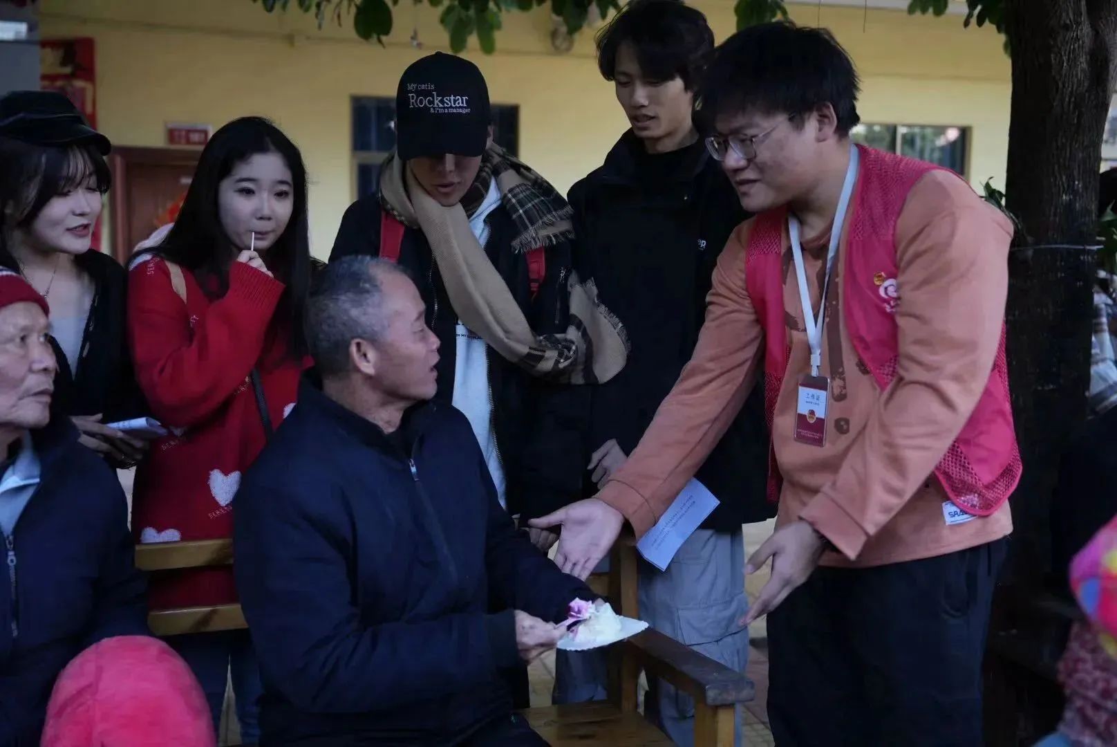 (志愿者分发蛋糕)