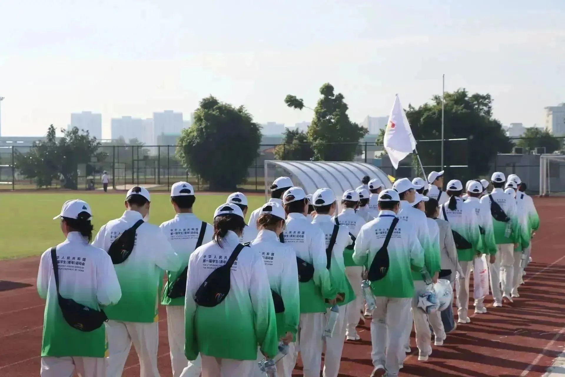 “小青芒”们,激情澎湃,满腔热血,手举学青会会旗,昂首阔步迈向会场。