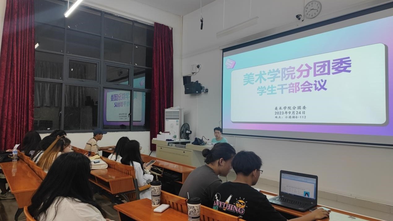 9月24日晚,美术学院分团委于北海艺术设计学院功德楼G-112召开了本学年第一次学生干部会议。本次会议由美术学院分团委主席团成员谭晓龙主持,美术学院分团委副书记许荣军、美术学院分团委主席团以及各部门干部参加本次会议。