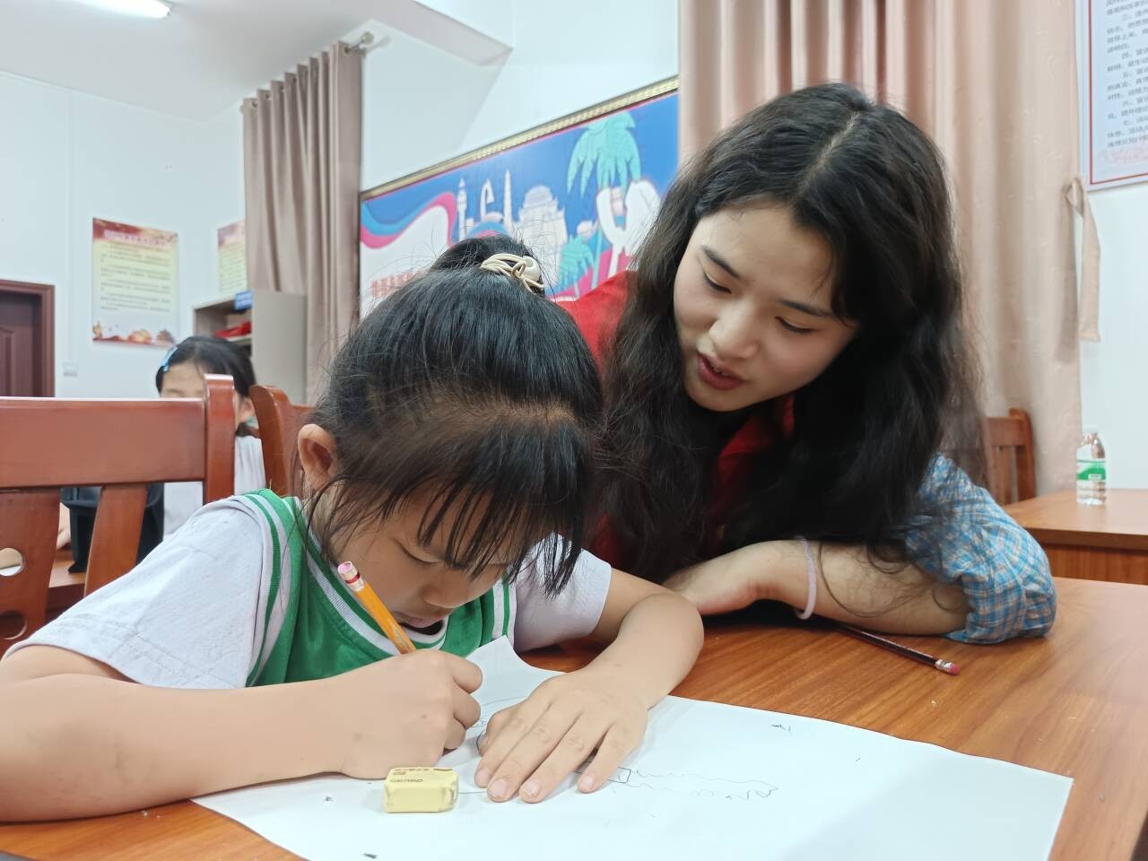 “老师点我,点我呀!”,口才课上,孩子们褪去了往日的胆怯,从害羞低头到主动举手发言。志愿者们通过打造角色扮演剧场、故事接龙大挑战等多种形式的课堂,给孩子们提供一个展示自我、提升自信的舞台,激发孩子们的想象力与创造力。志愿者的耐心倾听,也在他们心中种下了自信表达的语言之花。