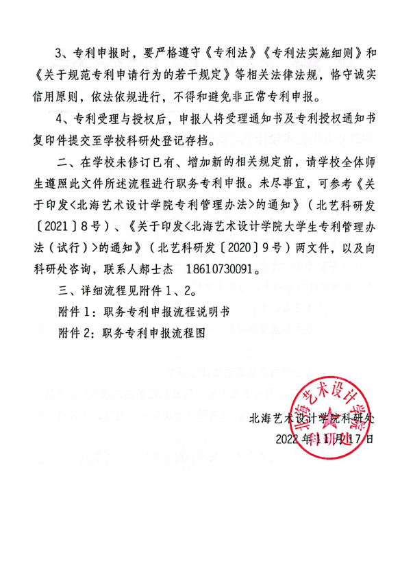2022年北海艺术设计学院职务专利申报流程和相关事项