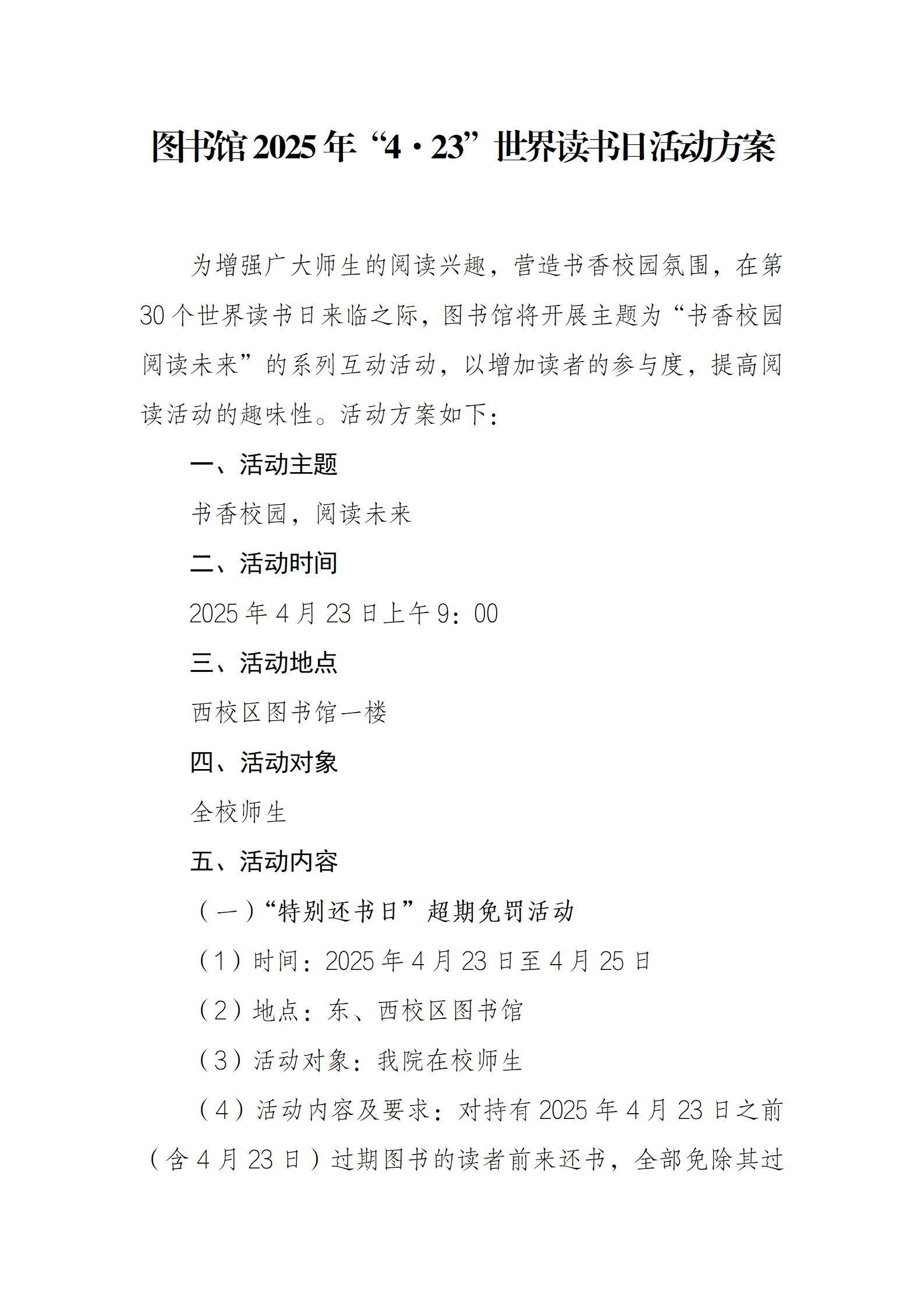 图书馆2025年“4•23”世界读书日活动方案