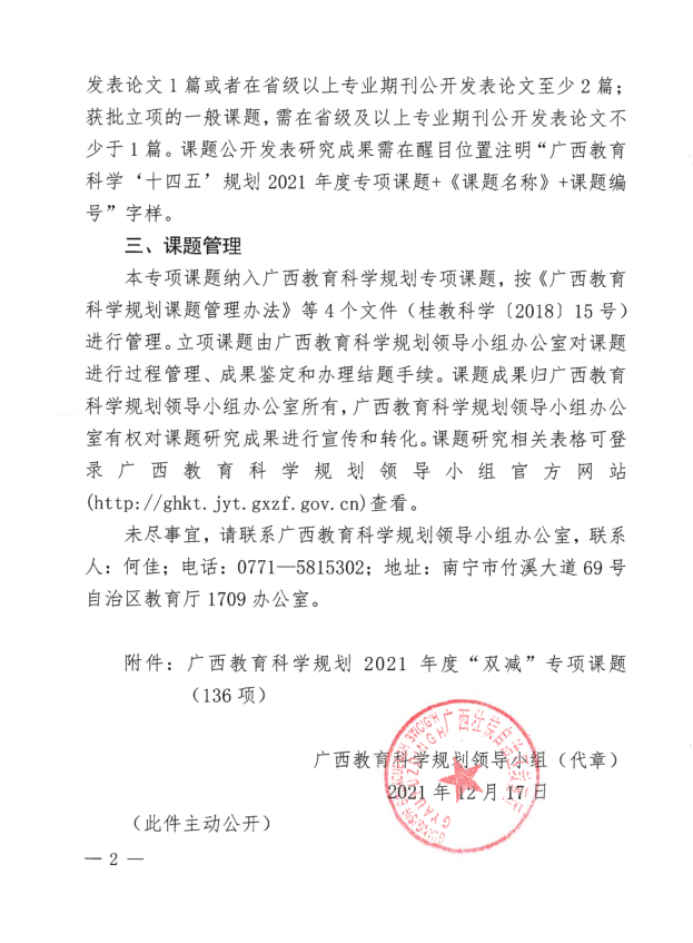 广西教育科学规划领导小组关于组织开展广西教育科学规划2021年度“双减”专项课题申报工作的通知