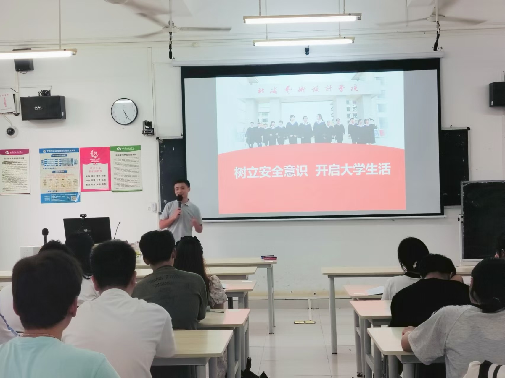 为增进新生对校纪校规的认识和了解,增强学生的安全防范意识,9月15日晚,我院在觉悟楼402教室开展新生行为规范教育和安全意识教育,组织新生认真学习国家和我校关于学生教育管理的各项规章制度。学院党支部书记、学工办主任谢伟,学工办副主任俸莲云出席并讲话。辅导员王伟靖老师带领2024级全体新生参会。