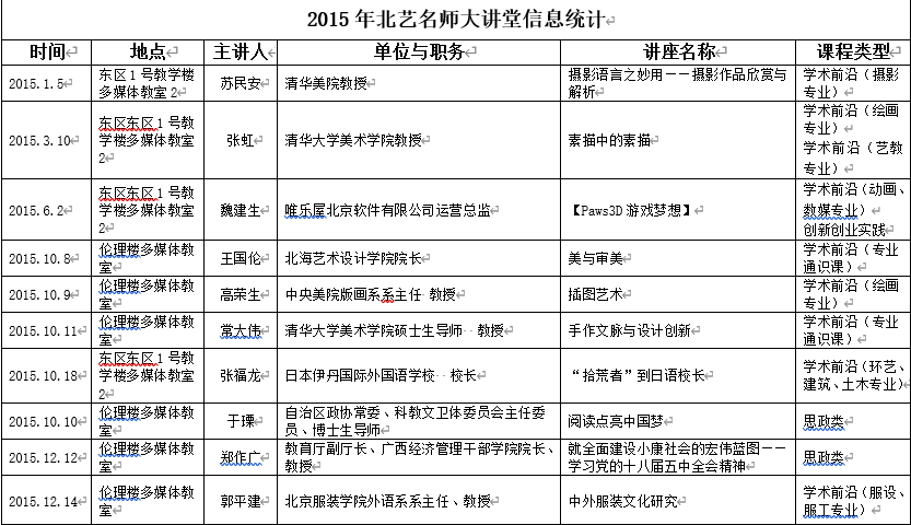 2015年北艺名师大讲堂信息统计