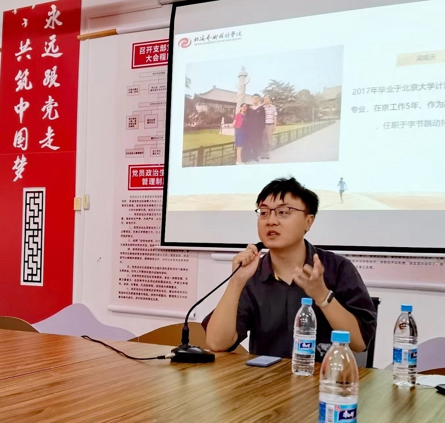 梁皓天毕业于北京大学计算机科学与技术专业,李雯毕业于南开大学旅游管理德语双学历双学位专业两位学长现就职于北京字节跳动公司邀请两位来参加本次的学习交流会,作为经历了大学学习发展规划和职场竞争的同龄人,他们对学习规划以及到北京如何更好开展学习和求职的经验分享,对北艺北海+北京双城培养的学生具有重要的参考价值。