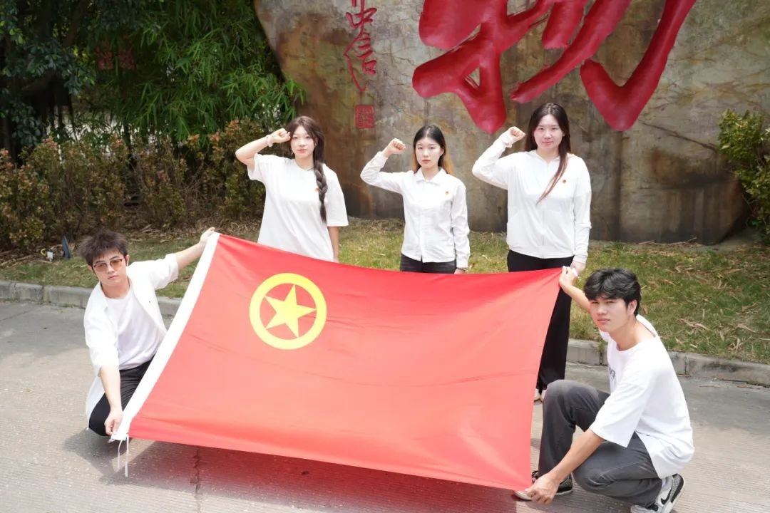 校团委开展定格青春,与团旗团徽共合影