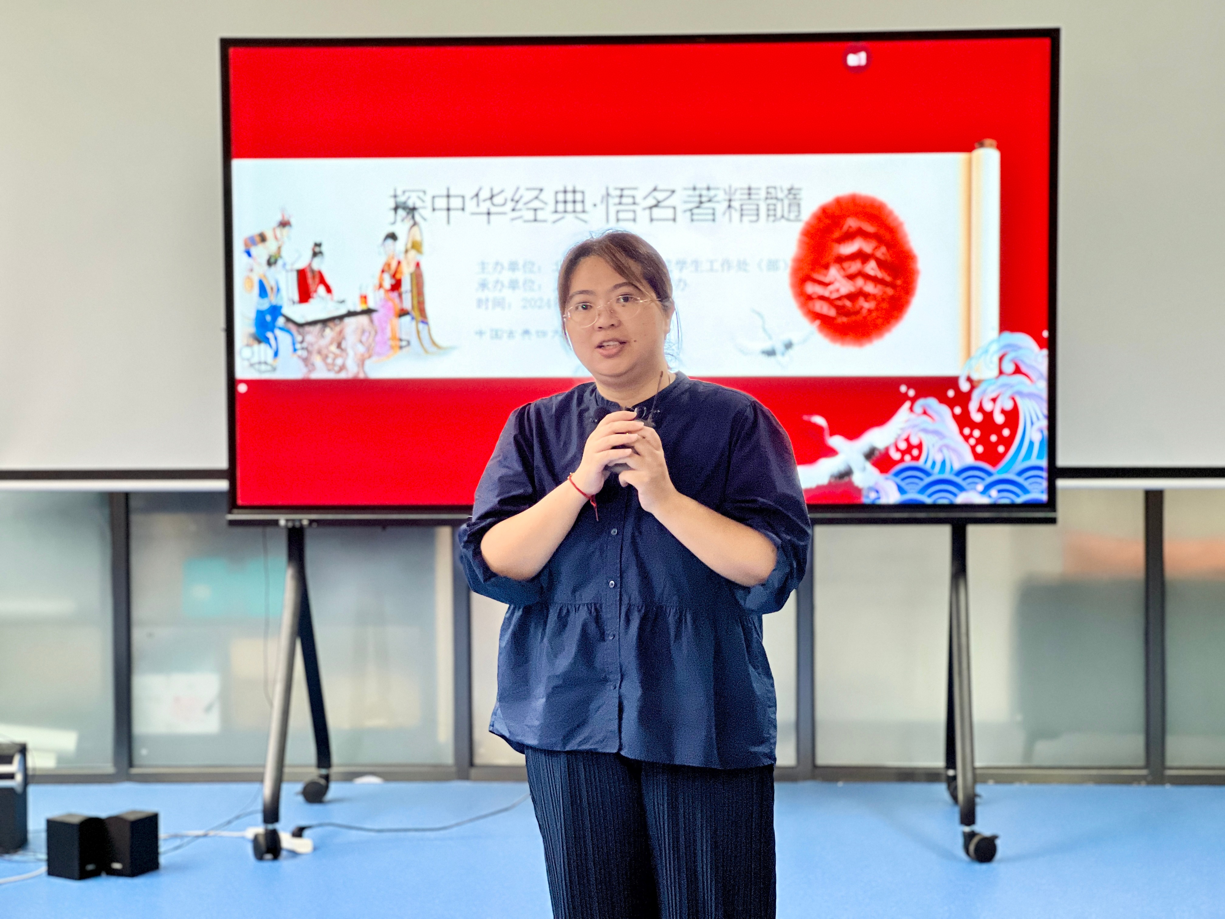 姜玮老师对本次大赛作总结发言,姜玮老师表示:“四大名著乃中国传统文化瑰宝,承载丰富内涵,有助于了解与传承传统文化。其蕴含高超文学技巧,可提升文学鉴赏与写作能力,还能让我们汲取非凡智慧与道德观念(如三国忠义、红楼世故、水浒侠义、西游坚韧),塑造良好品格价值观,总之,读之可带来知识增长、心灵滋养与精神升华”。