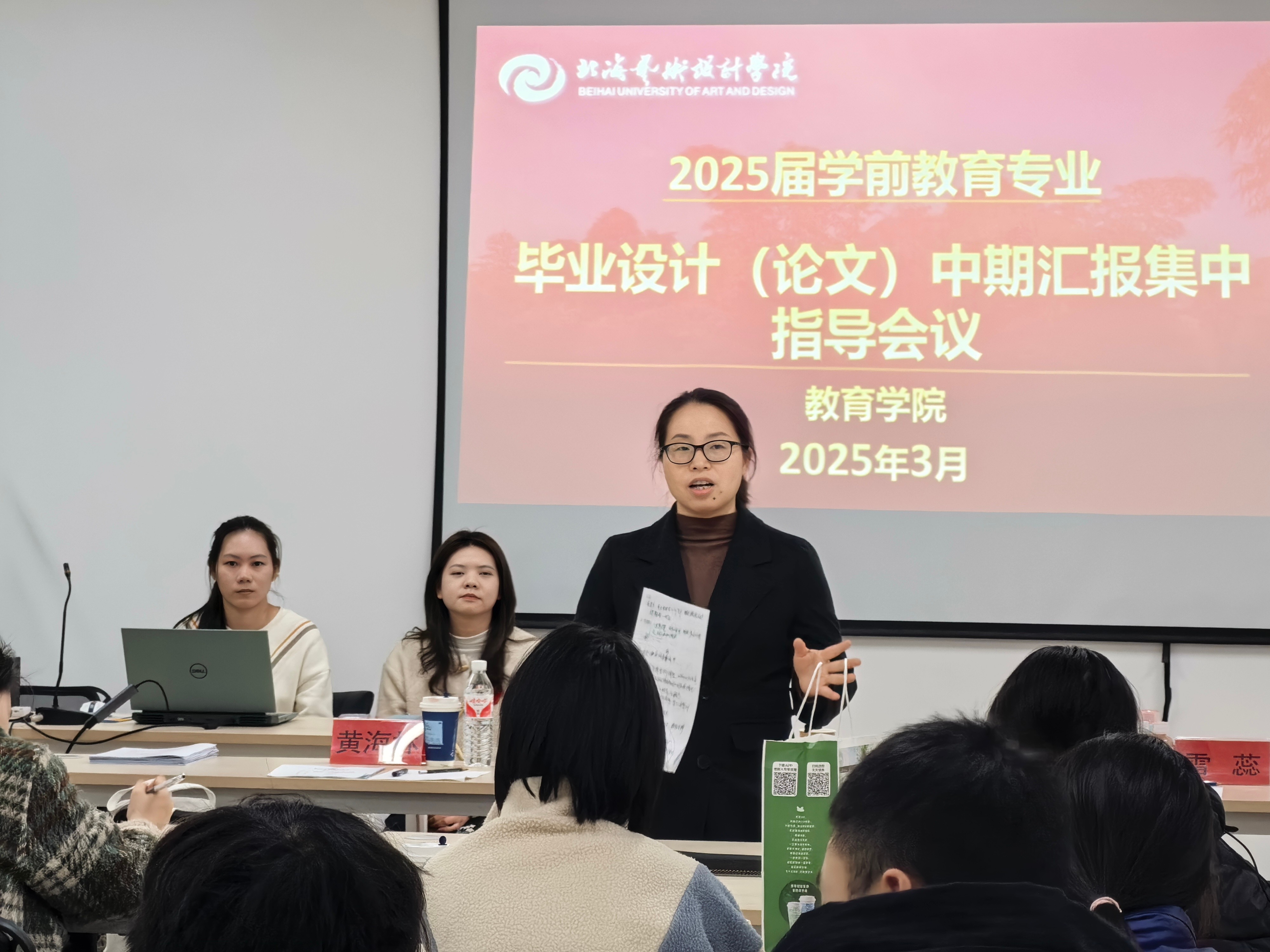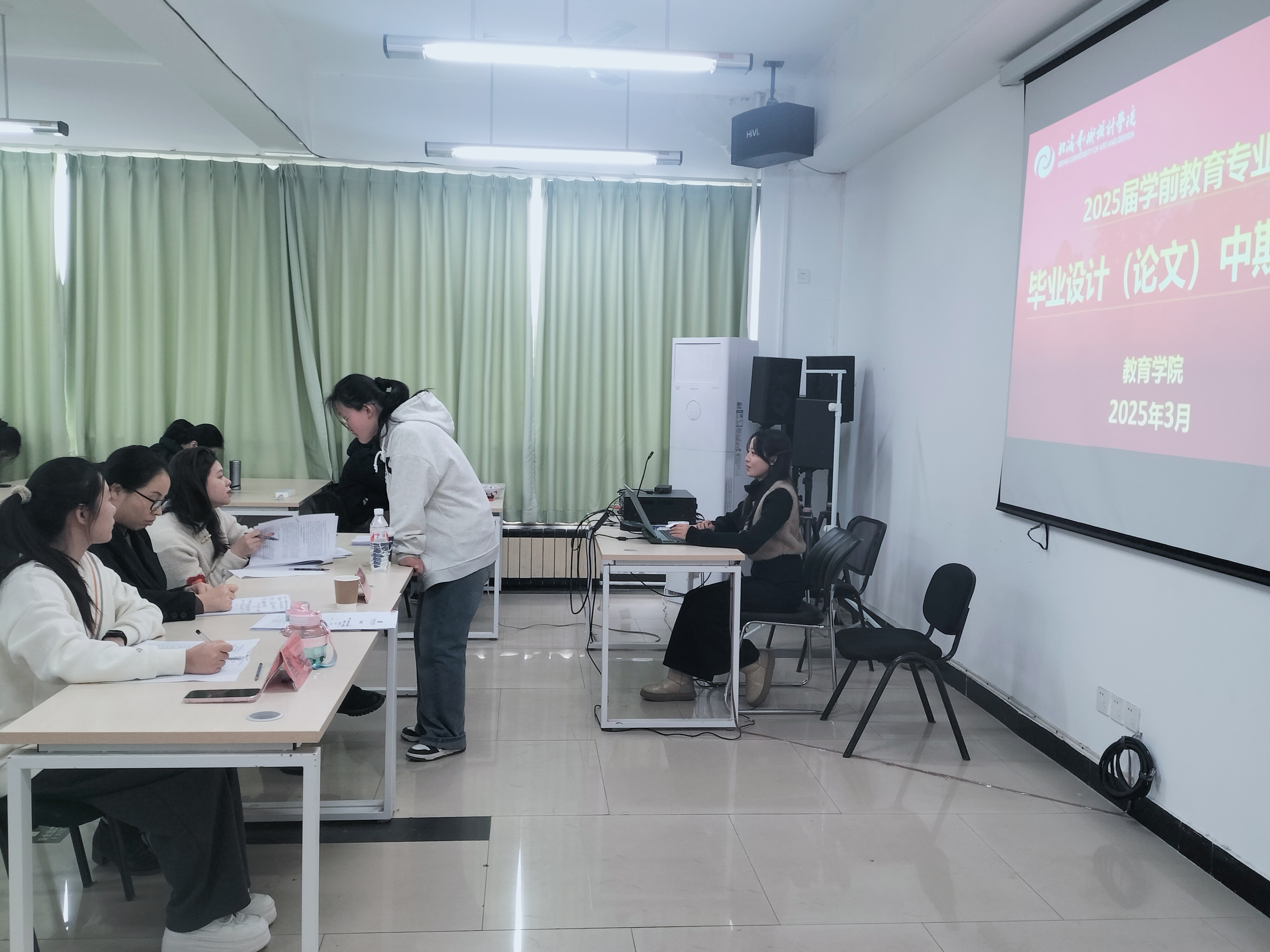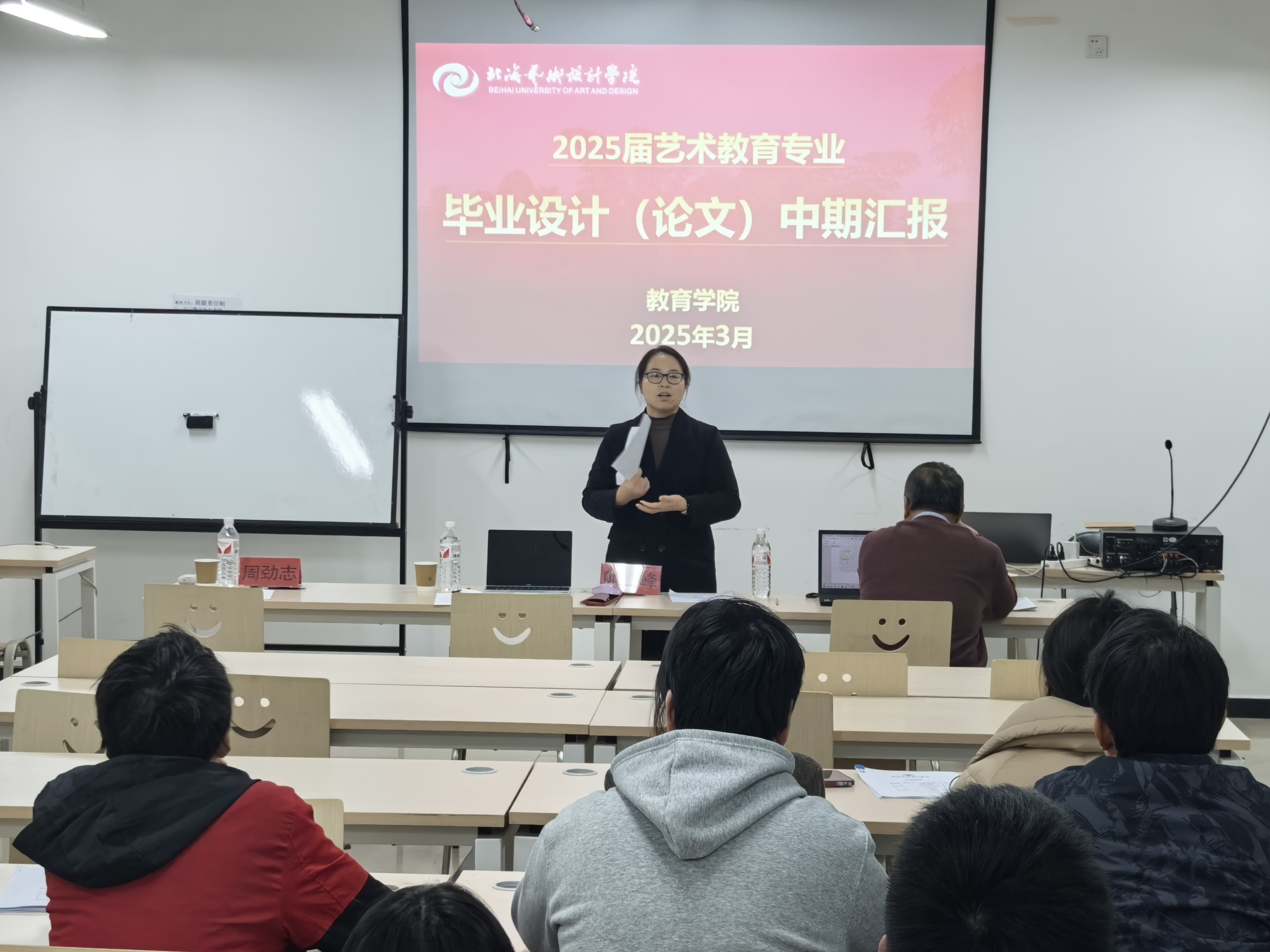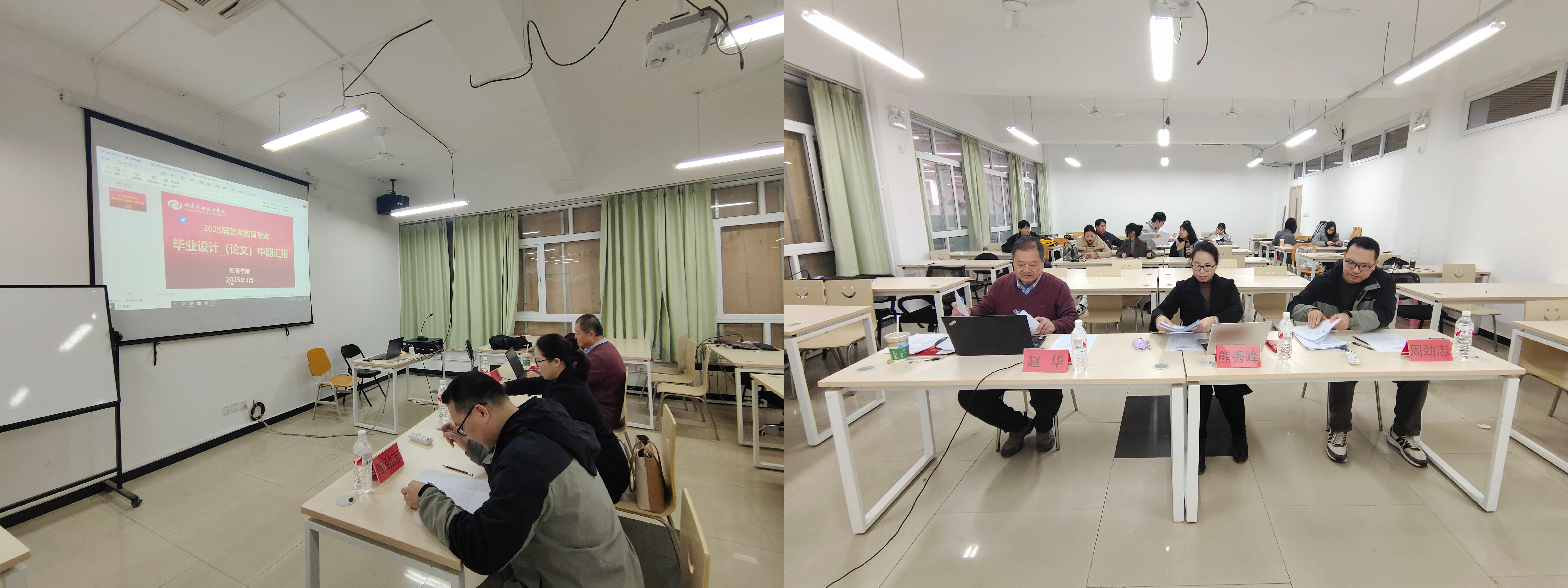 艺术教育专业和学前教育专业于2025年3月11 日至13日开展毕业论文中期汇报工作,参与答辩的老师包括院长熊秀峰、艺术教育教研室副主任周劲志、教务办主任黄海林、艺术教育专业老师赵华教授、学前教育专业雷蕊老师。同时,为了更好地帮助学生完成学业和就业,,各位老师于3月14日进一步深入地开展了个人论文和就业指导工作。