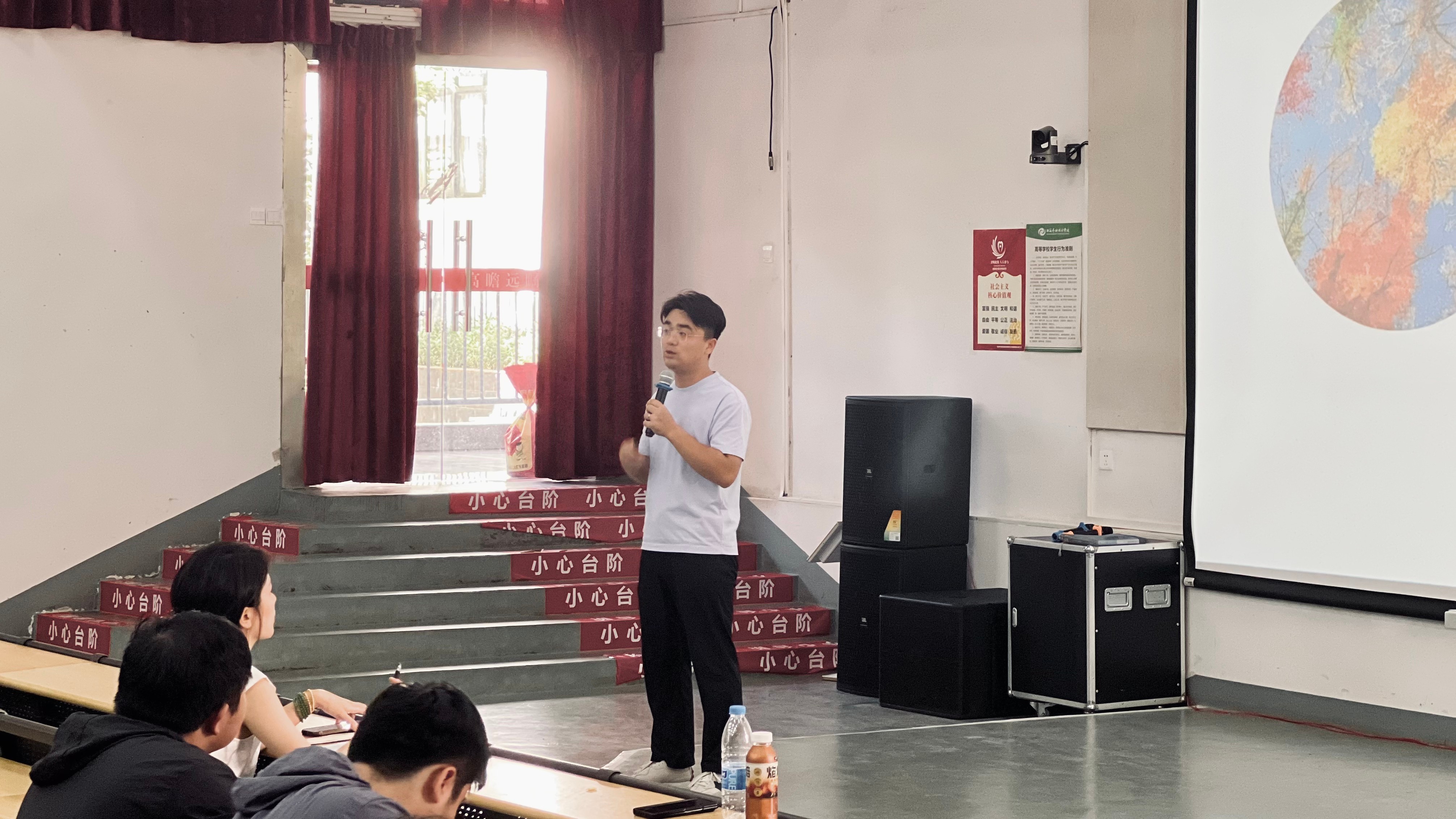 随后,学院学工副院长裴景旺围绕行前准备、驻岛实践、返程途中三个阶段,为全体参与师生开展专项安全教育。裴副院长结合海岛地形与实践教学行程,分阶段细化各项安全事项,着重讲解了交通、饮食、住宿、天气及潮汐方面的安全事项,将不得下海游泳的要求作为此次实践的硬性安全准则,并反复叮嘱“安全无小事,责任大于天”。他要求每位学生牢记自身是“个人安全第一责任人”,无论是集体活动还是自由实践,均需提前向带队老师报备行程,严禁擅自脱离团队,遇到问题第一时间沟通解决,全力确保此次涠洲岛实践活动安全、有序开展