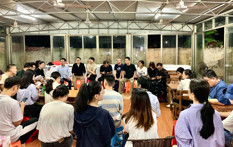 (全体教师在驻地开会)