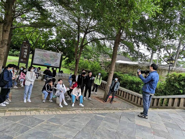 (姜献生教授在红色广场讲述关于涠洲岛的红色故事)