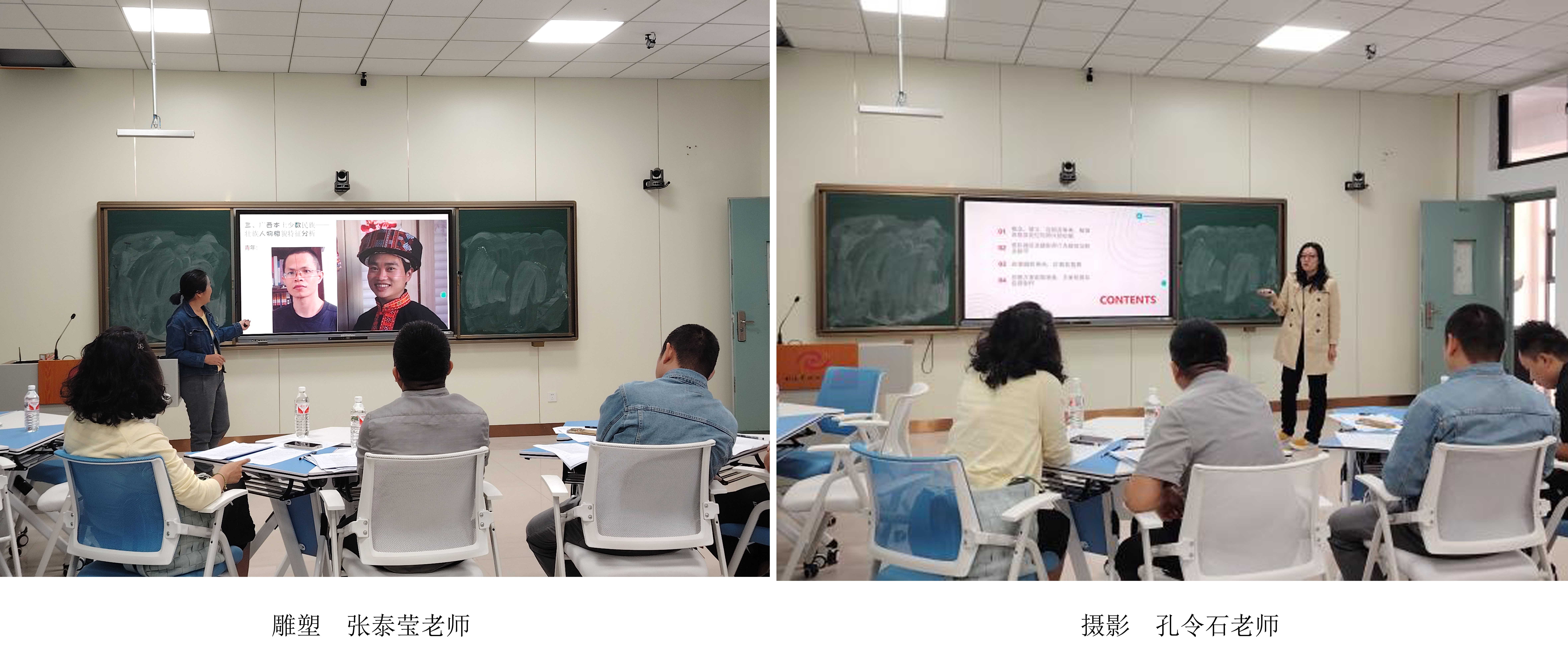 本次参加学院初赛的11名教师是通过学院海选由绘画、雕塑、摄影、美术学四个教研室择优推选而出,参赛选手既有经验丰富的老教师,也有刚入职的年轻教师。各位教师在比赛中充分展现了自己的教学能力和水平,展示了各自的思政教学特色。他们把广西地域特色,日常生活中,平常教学中诸多与学生生活密切相关、生动感人的思政案例引入课堂,推动了思政元素与专业课程的有机融合,向在场的评委呈现了一堂堂教法灵活、讲练结合的公开课,得到了评委们的认可。