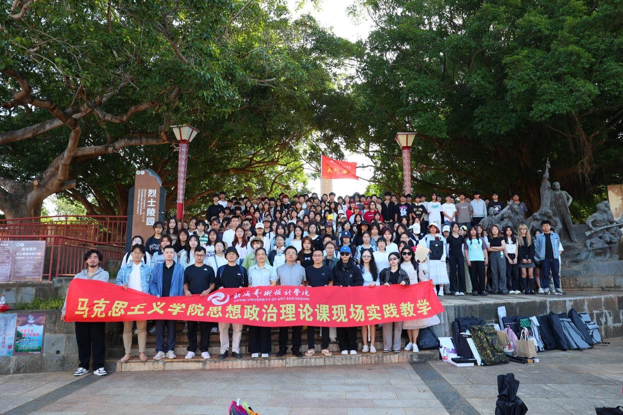 本次写生活动还融入了思想政治教育内容。在涠洲岛革命烈士纪念碑前,思想政治课教师罗秋梅讲述了涠洲岛的革命历史,带领学生回顾先辈们坚定信仰、无畏牺牲的英雄事迹。这一环节让学生们深刻体会到艺术创作与家国情怀的联系,进一步激发了他们对民族精神和人文关怀的思考。