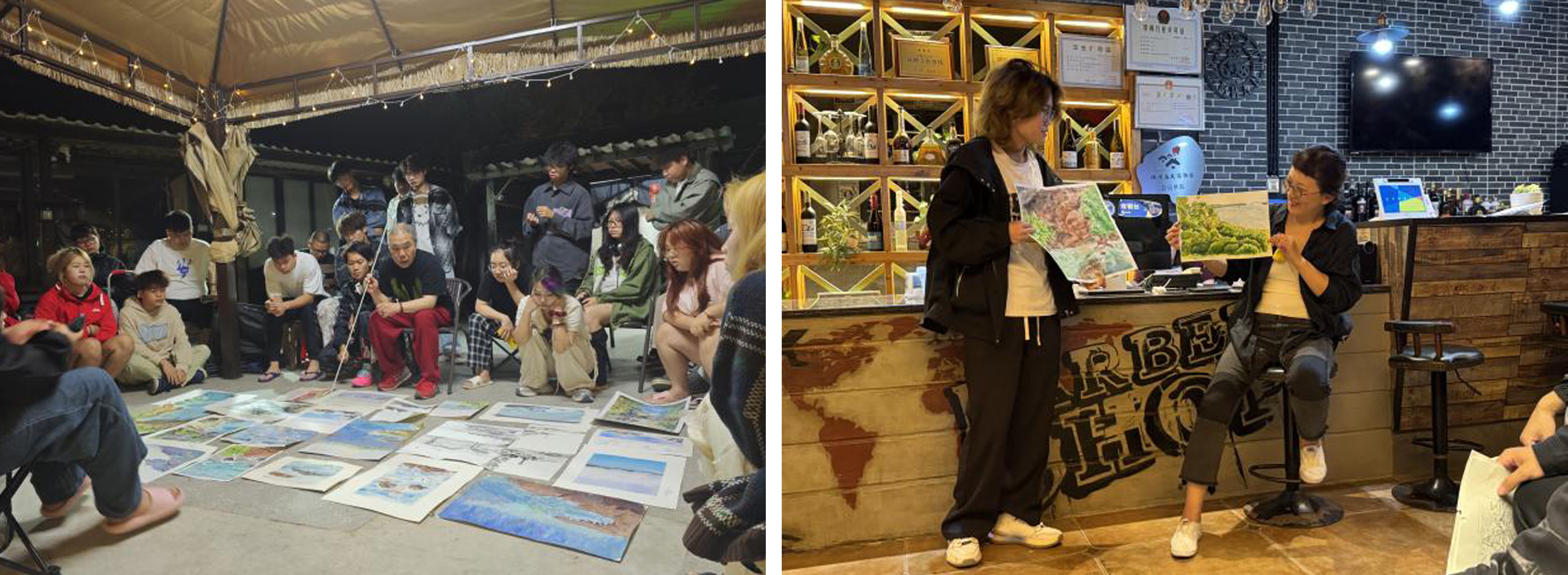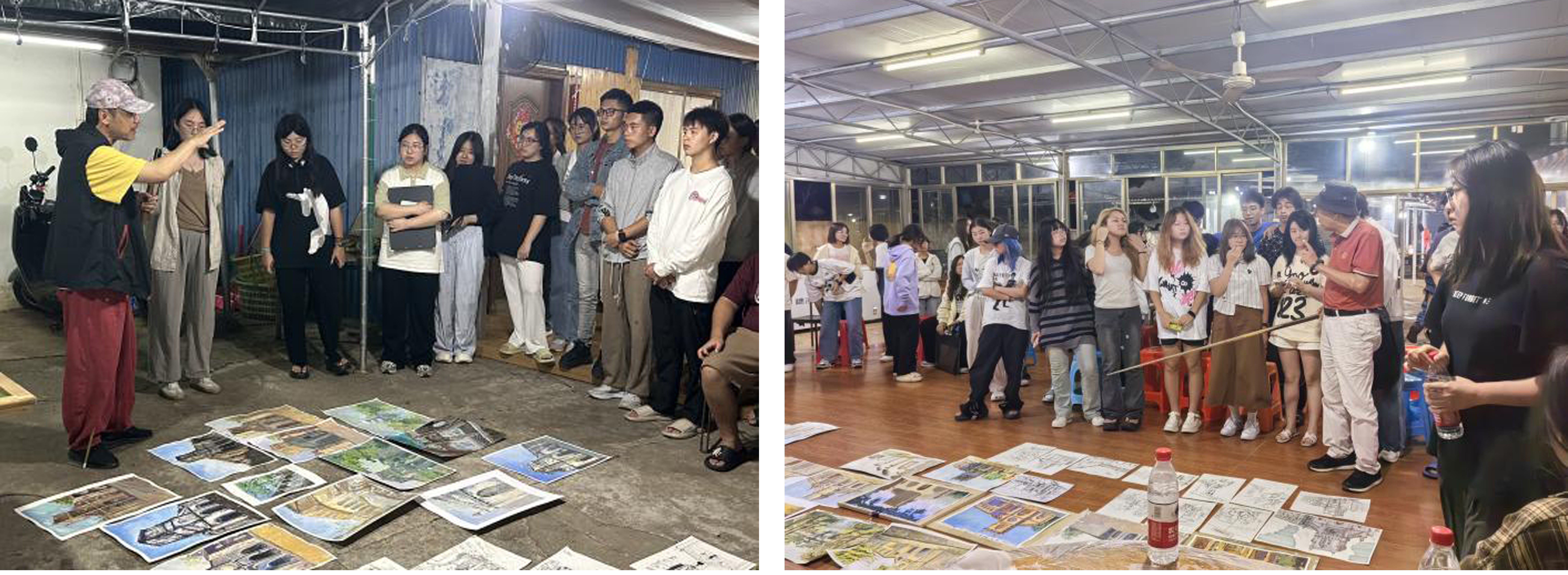 每天晚上的评画环节则为学生提供了展示与交流的机会,帮助他们在实践中不断精进技艺。同学们还以个人视角融入创意,尝试用画笔表达涠洲岛的精神内涵与艺术情感,创作出许多具有个性化特色的优秀作品。