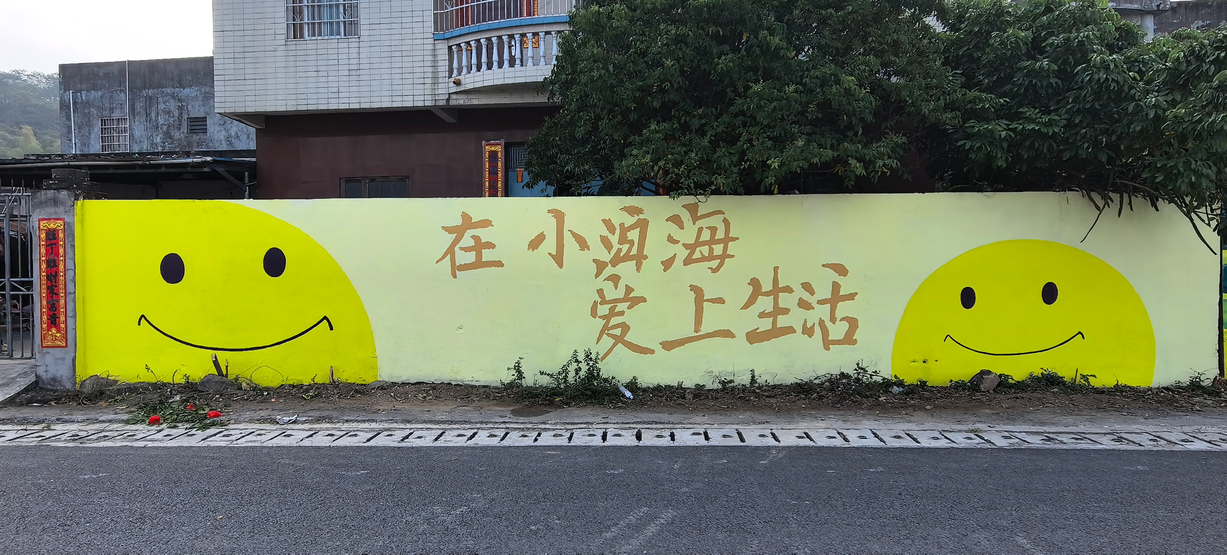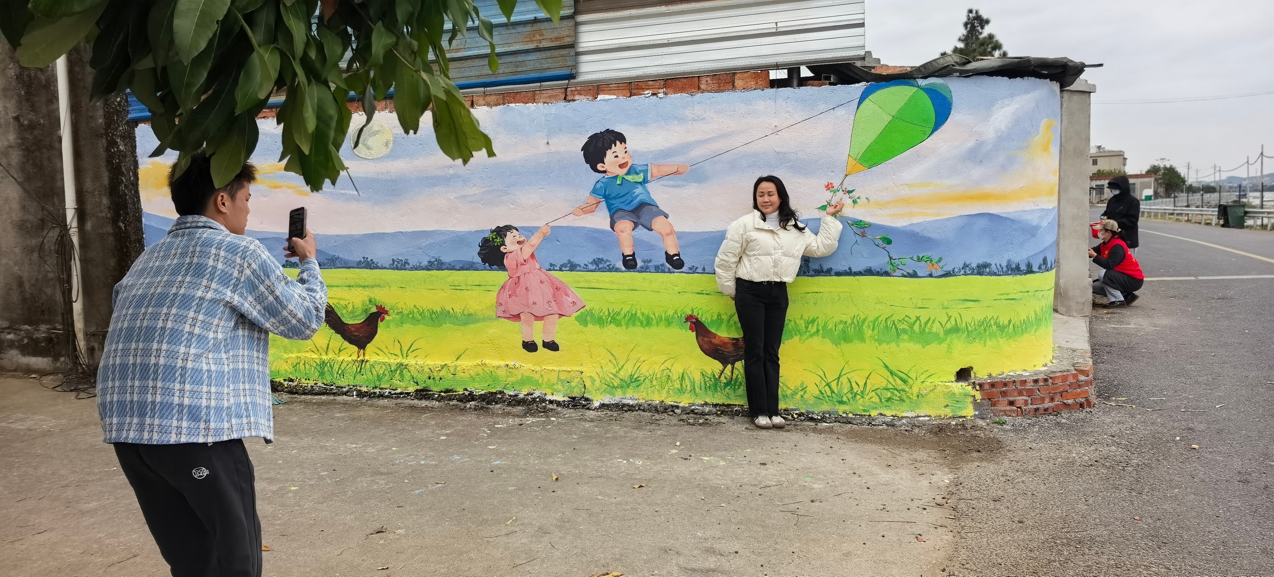 山村小洱海墙绘作品游客打卡照