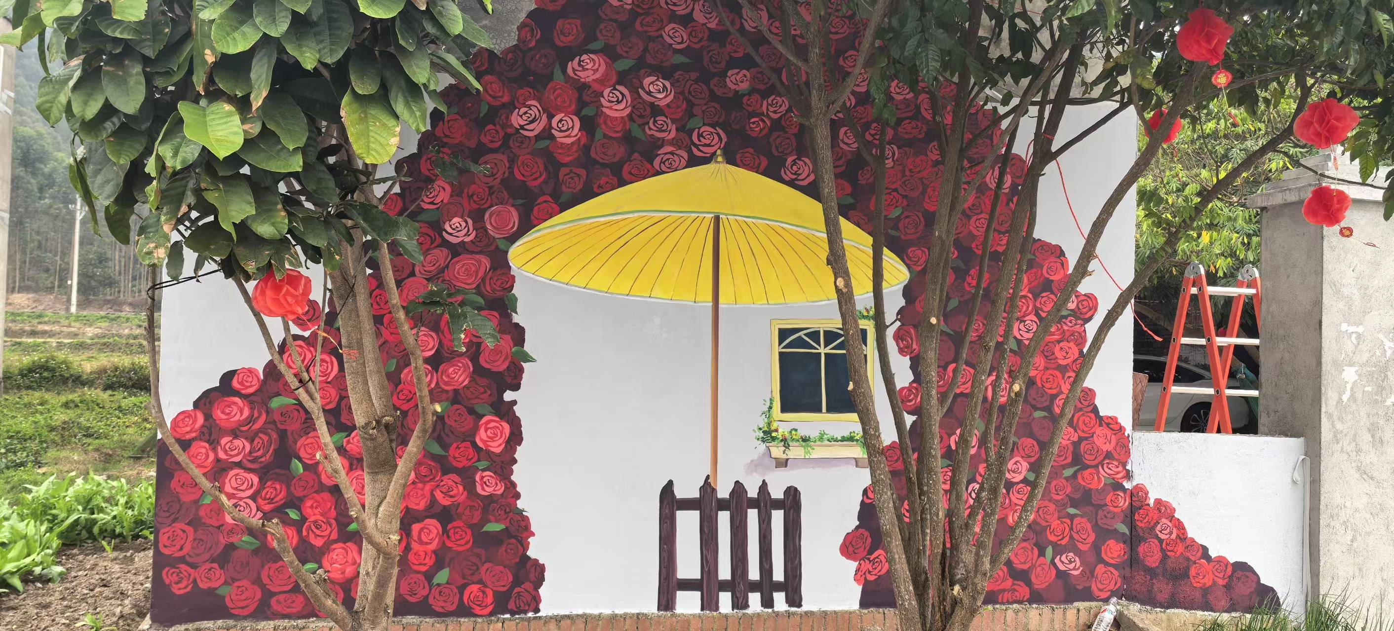 井山村小洱海墙绘作品《伞下玫瑰》
