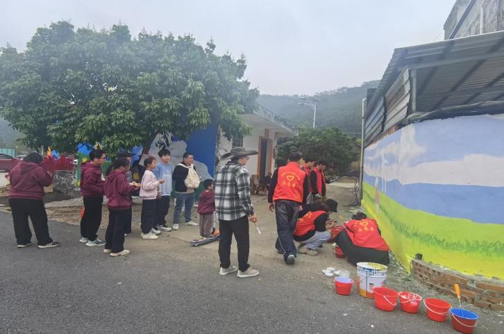 前期在创作过程中,师生团队深入挖掘井山村的历史文化底蕴,将红色革命故事、农耕生活的智慧与勤劳、以及生态旅游的绿色发展理念巧妙融入墙绘之中。每一幅作品都承载着对乡村文化的深刻理解与尊重,同时也展现了现代艺术对传统文化的创新诠释。