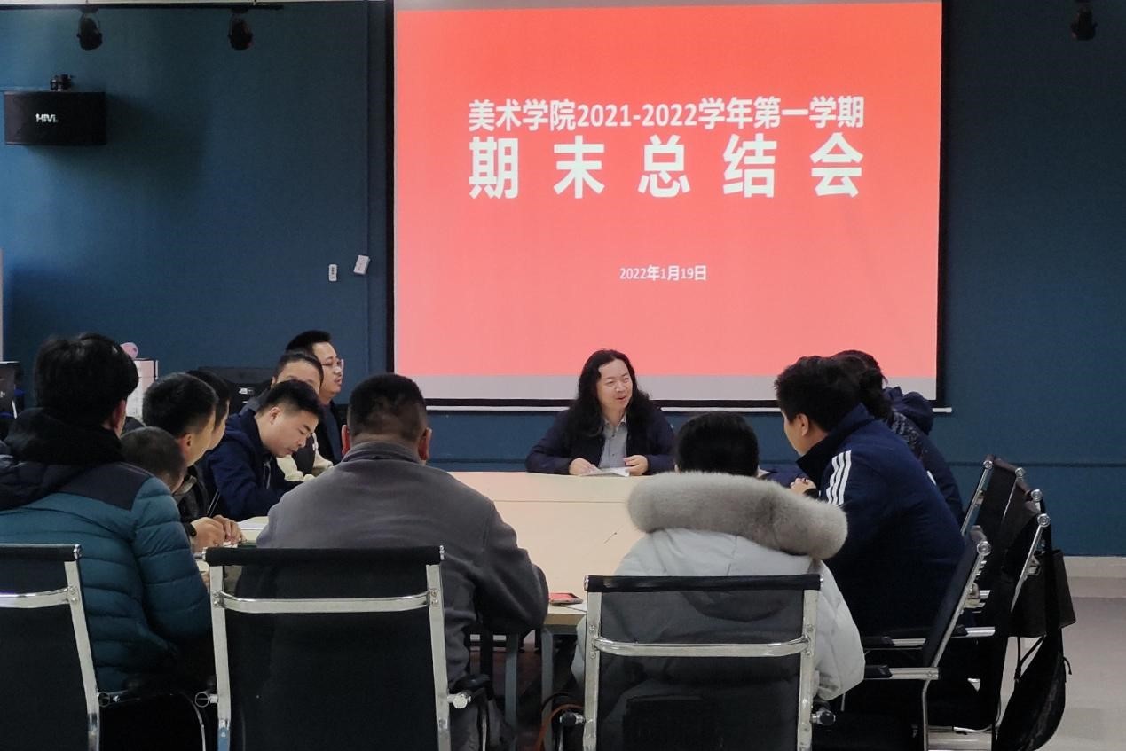 2022年1月19日下午3点,在艺术楼313举行美术学院2021-2022学年第一学期期末总结会暨美术学院2021年度总结会,会议由副院长龚为主持,副校长胡胜参会。