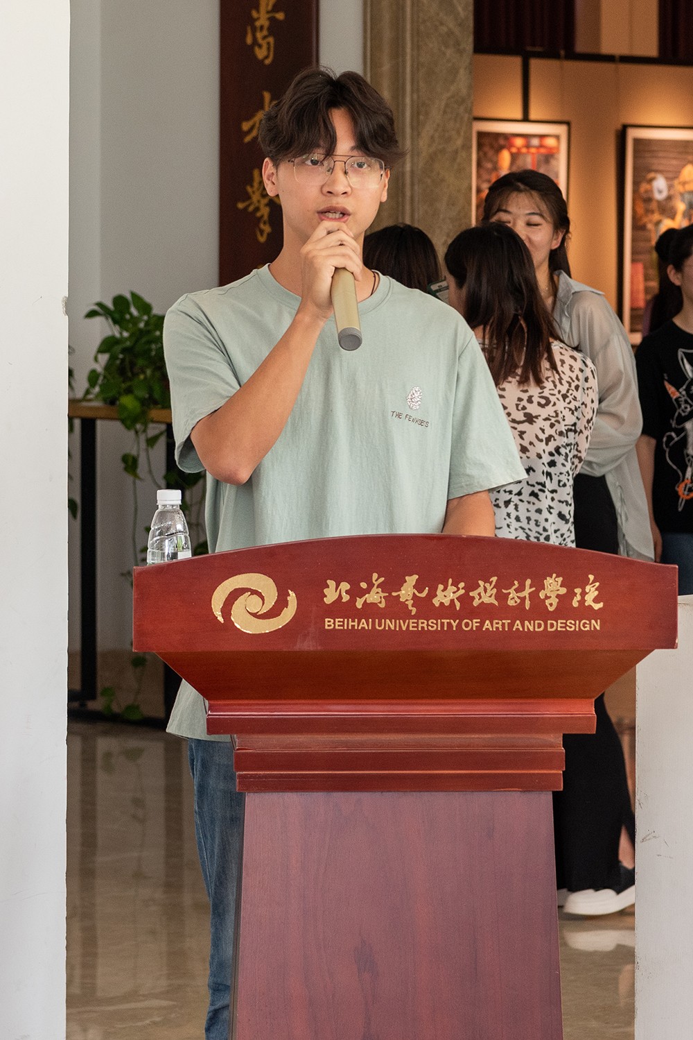 开幕会进行第二项,由学生代表雕塑系1801班的黄志同学发言,他对老师表示由衷的感谢,并向大家讲述了自己的在校学习经历与感悟,黄志同学表示不要总是担心失败,要敢于面对新的挑战,抓住机会。全身心的投入到学习之中,就不会害怕没有结果。同时,调整好心态与把握时间也是大学生活以至于以后都需要去提升的能力。这次的成果展不仅是同学们三年的生活总结,更是能作为未来挑战的新机遇,希望大家能为了更好地明天而奋斗。