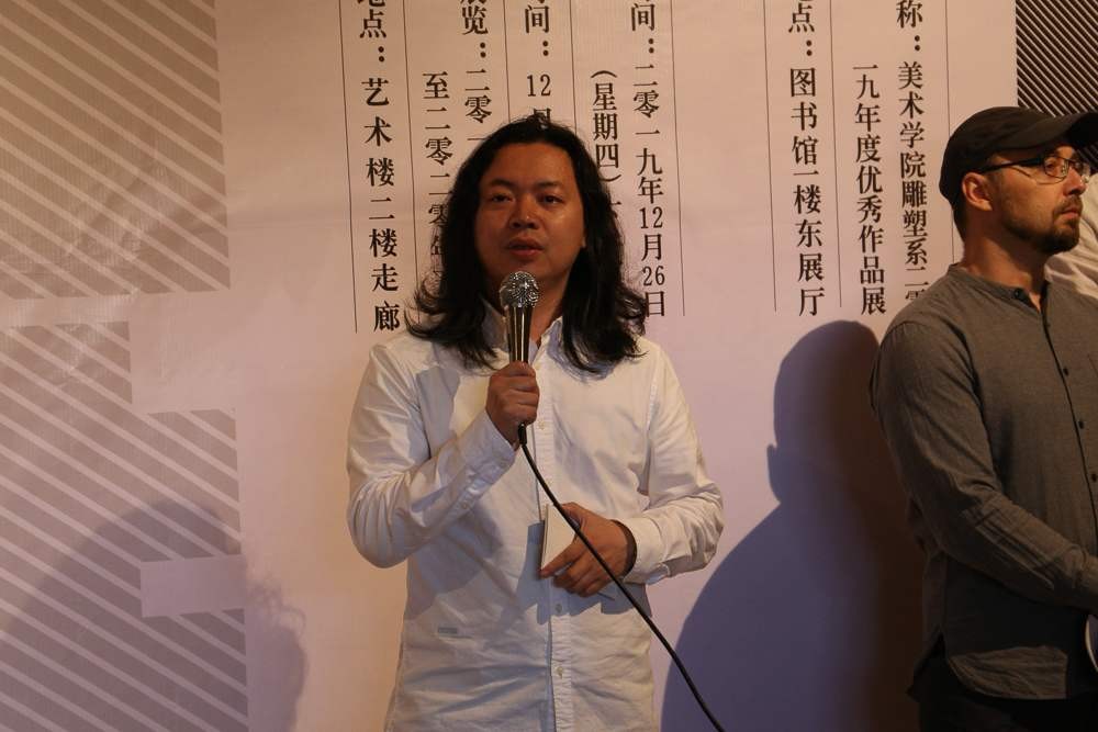 接下来,胡胜副校长致辞,他表示雕塑专业学校历史是最久的专业之一,雕塑系每一年的展览都很出色,涌现出不少的优秀作品,希望大家再接再厉,将雕塑专业越办越好。并宣布展览正式开幕。