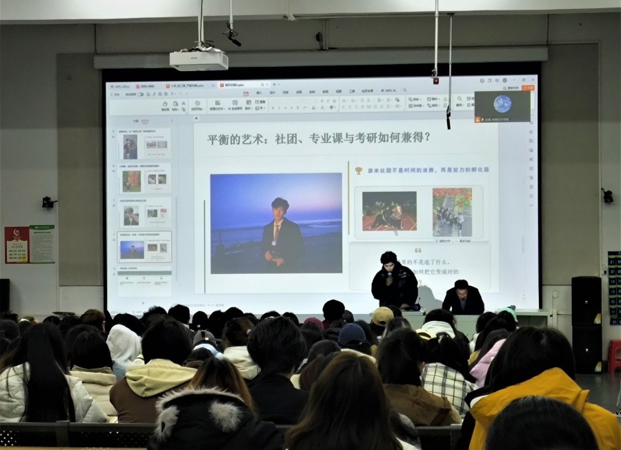 在分享环节,各学子代表结合自身多元经历展开深度分享。其中,有学子以退役士兵与双创项目成员双重身份,阐述军旅精神对学业规划的赋能;有“非天赋型”学子从技能积累、学习方法优化角度,拆解专业进阶的成长逻辑;也有学子结合团委工作与考研备考经历,分享多任务并行的时间管理矩阵及学业工作平衡技巧;还有创业先行者复盘从兼职到自主创业全流程,为低年级学子实践提供指引;部分学子围绕“兴趣-专业-考研”协同发展剖析内在逻辑,或结合专业竞赛获奖经历分享备赛策略与能力打磨心得。此外,专业课优异的跨界学习者、播音与主持艺术专业学子,还分别从跨学科学习、专业技能精进维度补充经验,让学弟学妹深刻理解“大学成长没有固定模板”。