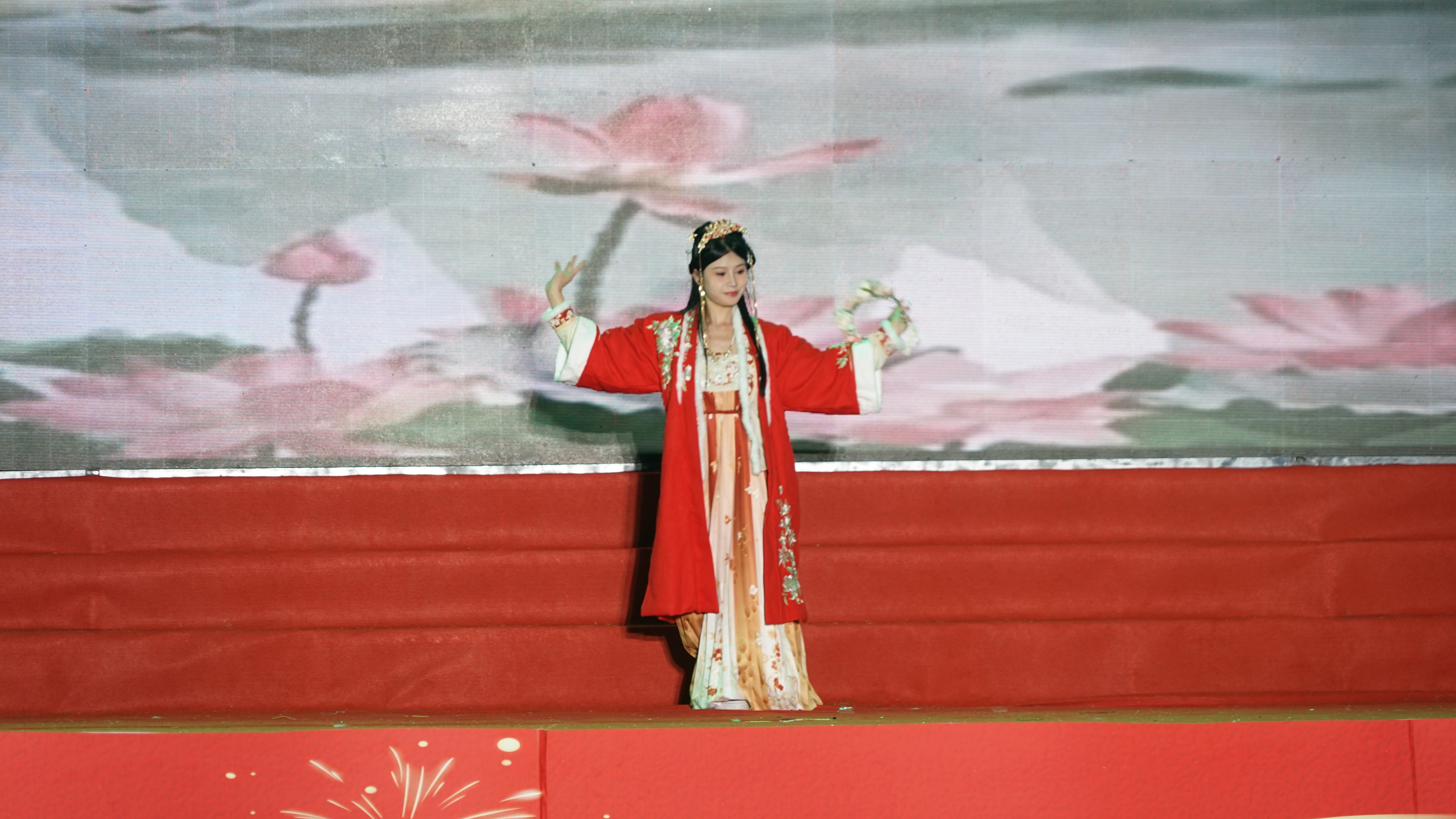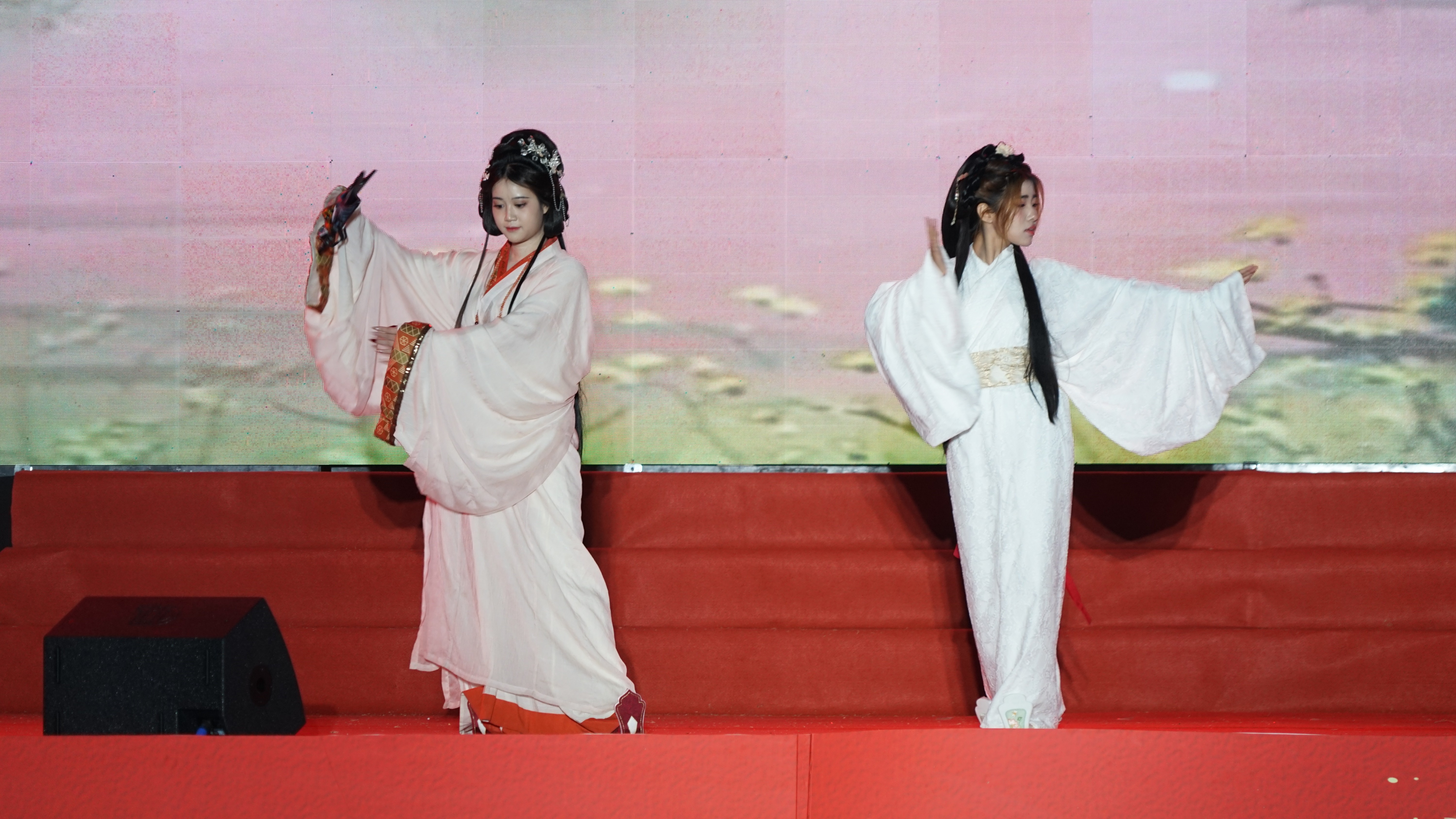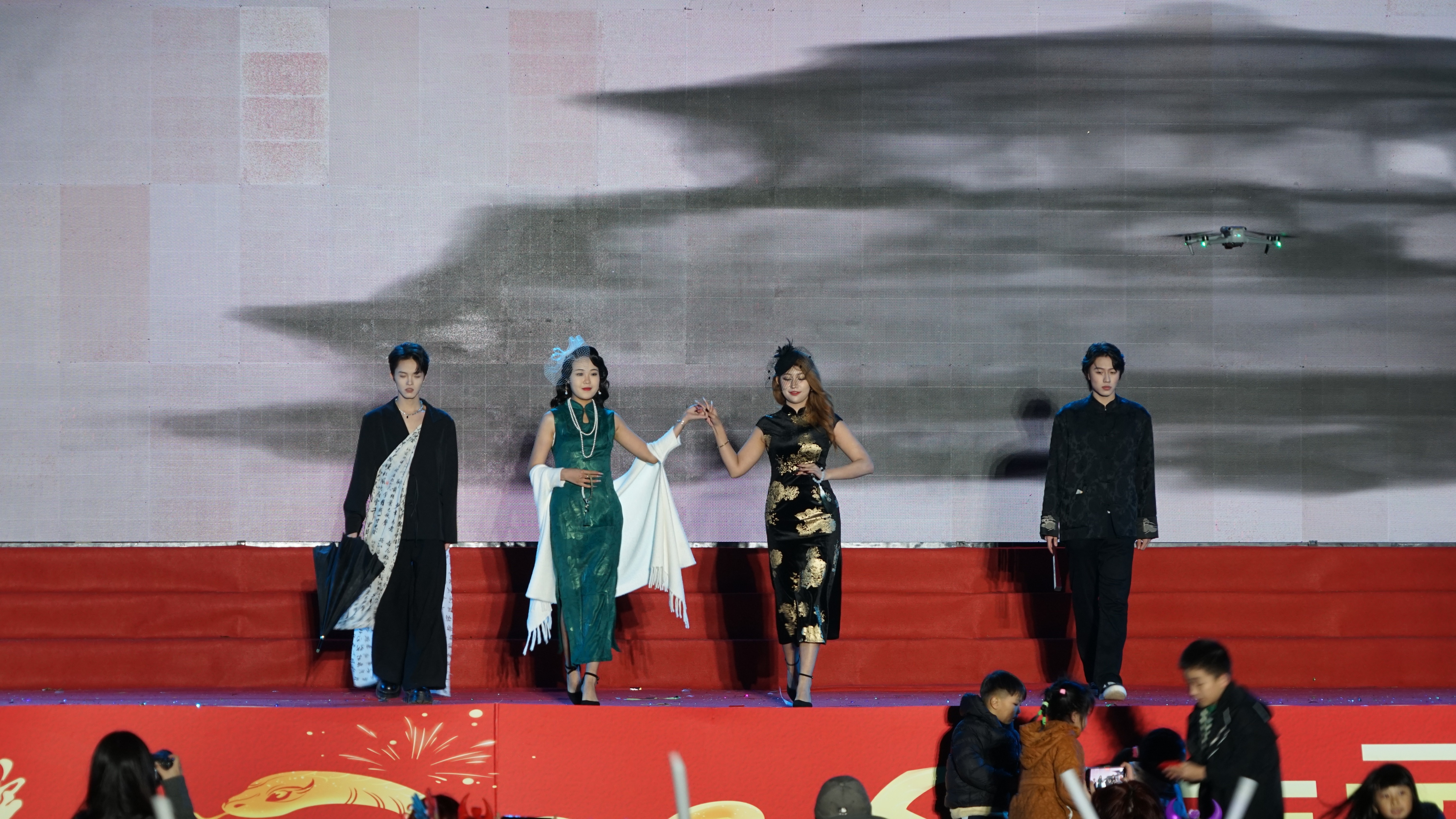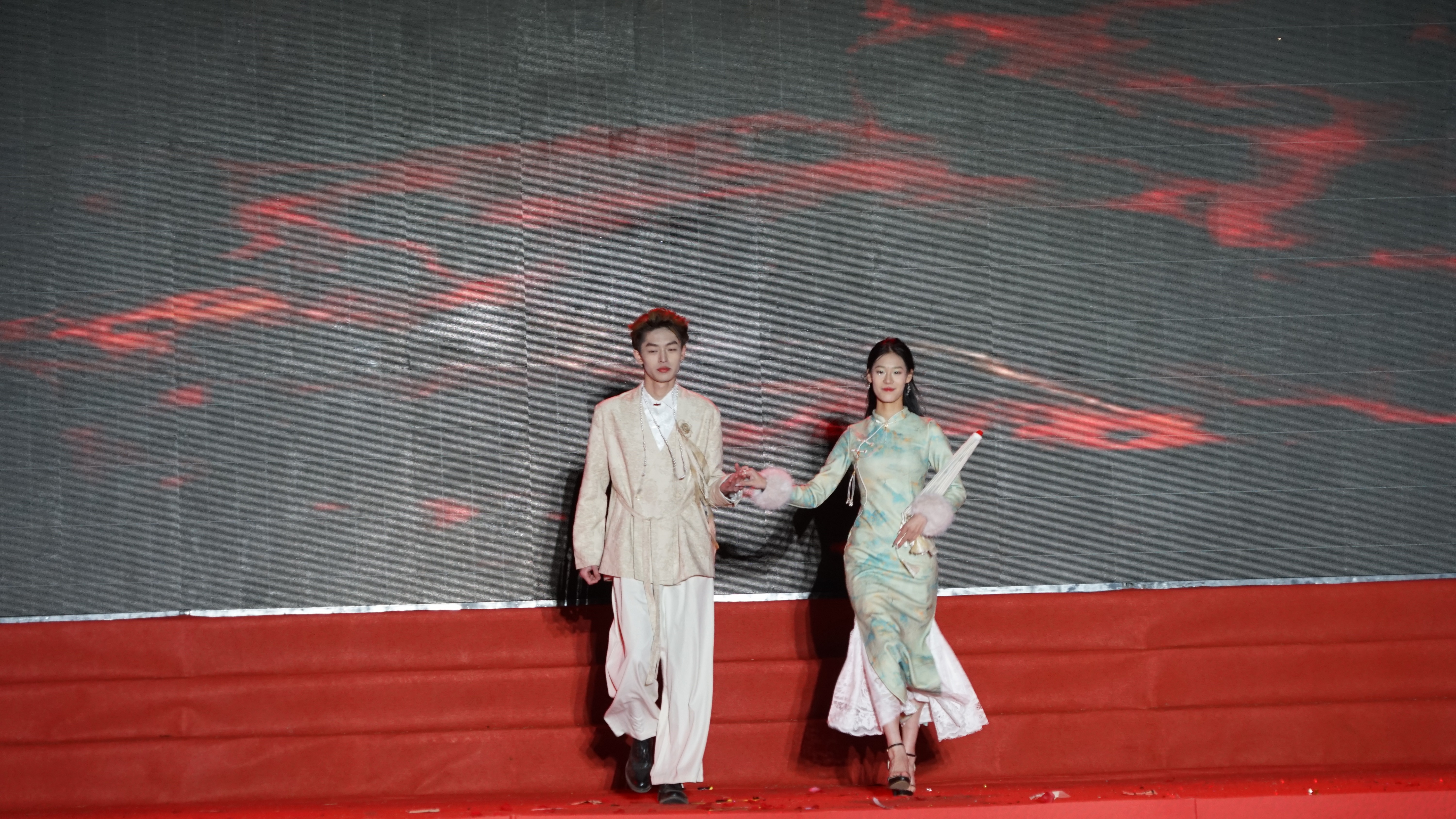 走秀《华夏霓裳秀--千年的祈愿》模特们身着华丽汉服,优雅台步仿佛穿越时空,尽显中华传统服饰魅力。
