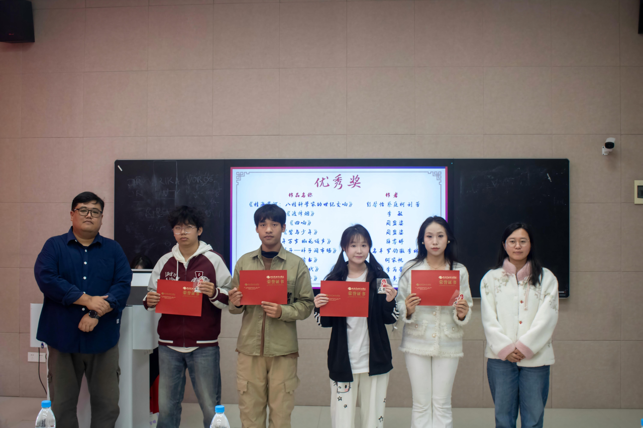 活动伊始,主持人详细阐释了剧本征集大赛的举办宗旨——以文字为媒搭建戏剧创作交流平台,挖掘校园戏剧创作新力量。随后,伴随着热烈的掌声,获奖名单正式揭晓,参会嘉宾和教师依次为获奖学子颁发荣誉证书。
