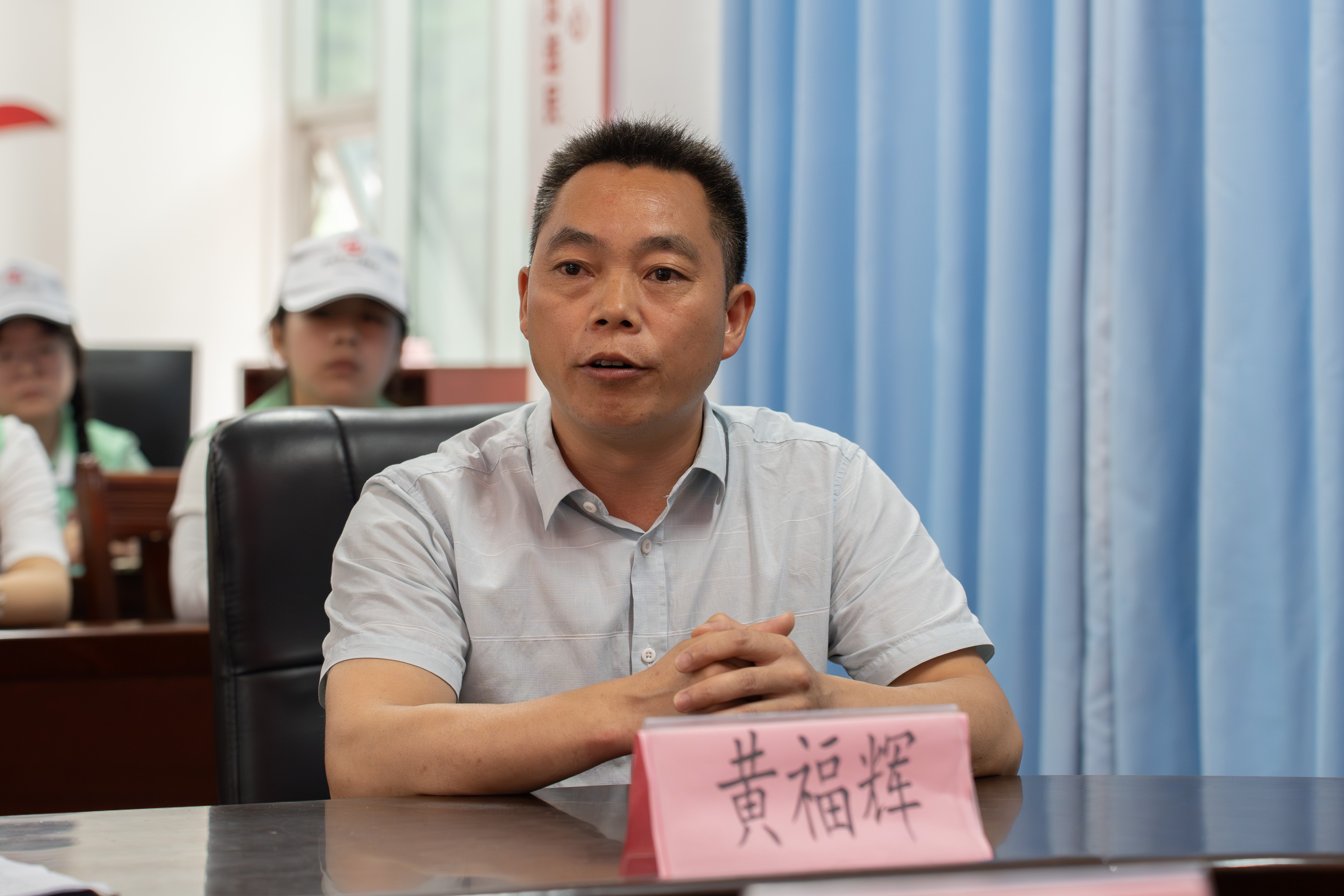 魁圩乡中心学校副校长黄福辉为大家介绍魁圩乡中心学校的基本情况。他提到,魁圩乡地处偏远山区,经济发展相对滞后,希望志愿者们能通过此次三下乡深入了解落后地区的实际状况,并祝愿此次支教活动能够顺利开展。